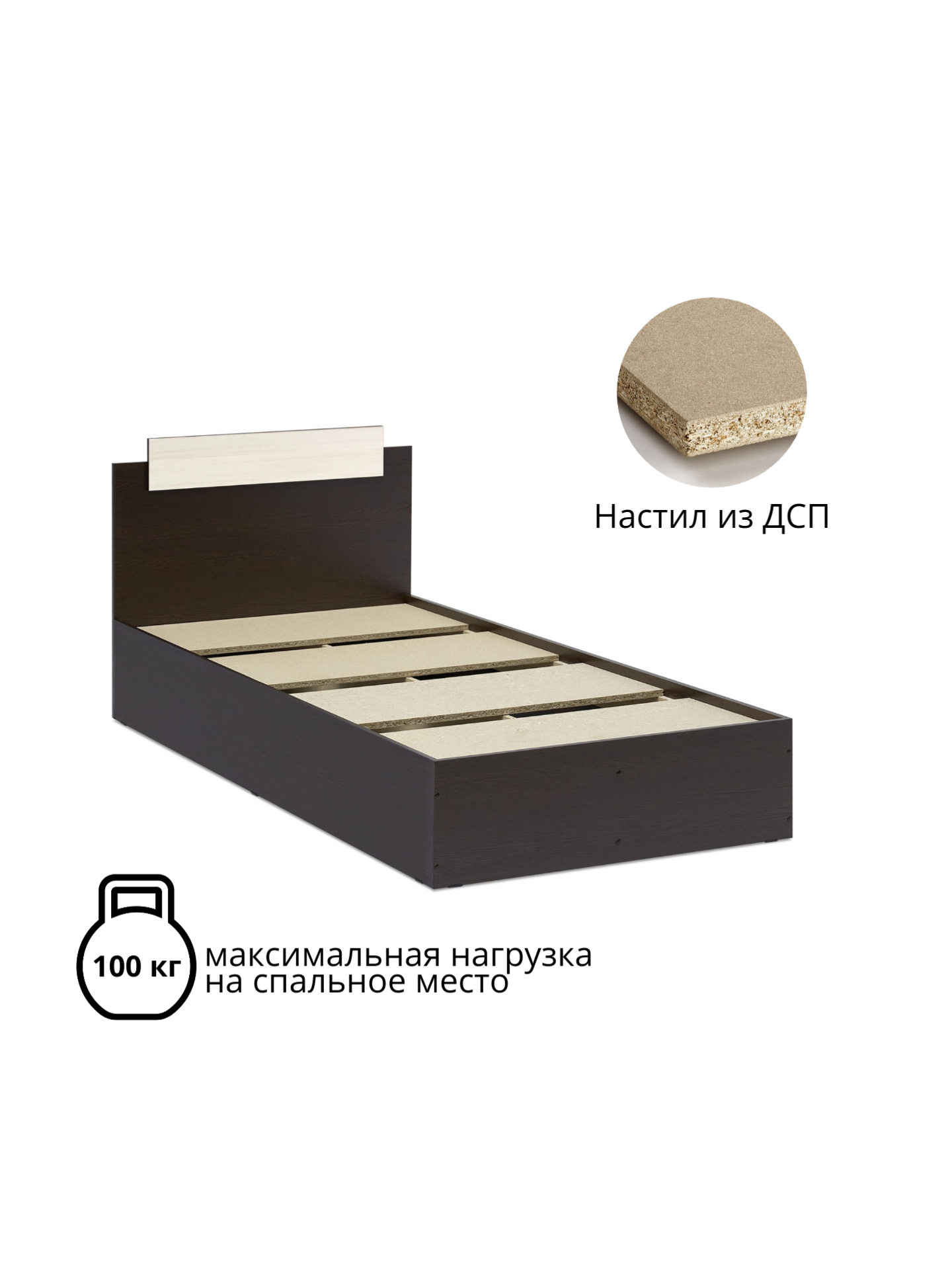 Кровать односпальная ЭКО 90х200, Дуб Венге/Сосна Лоредо, с настилом ДСП информация: