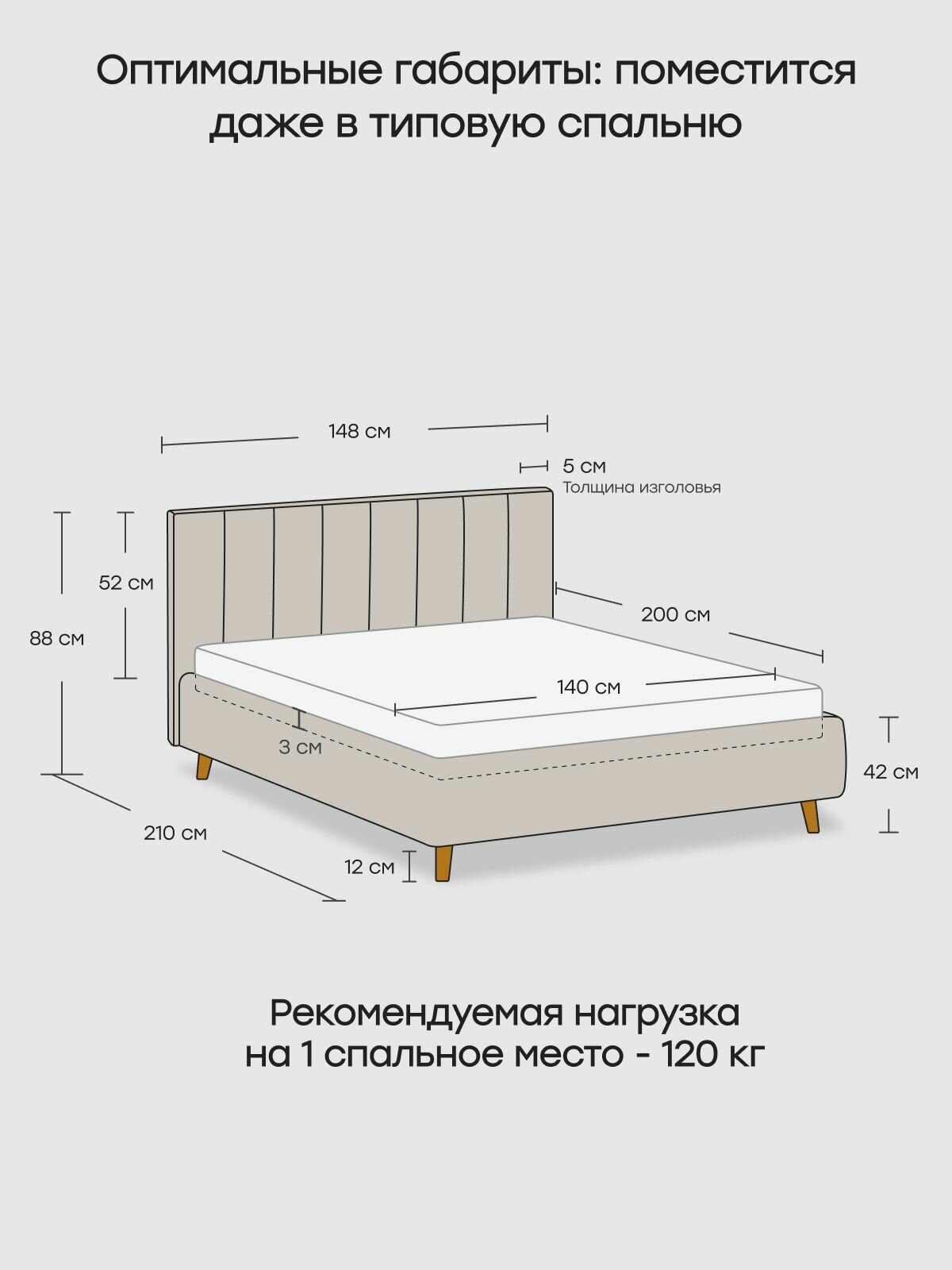 Двуспальная кровать 140х200 "TERK" с мягким изголовьем для дома, для спальни. Велюр серый Dakota 24 29 372 ₽
