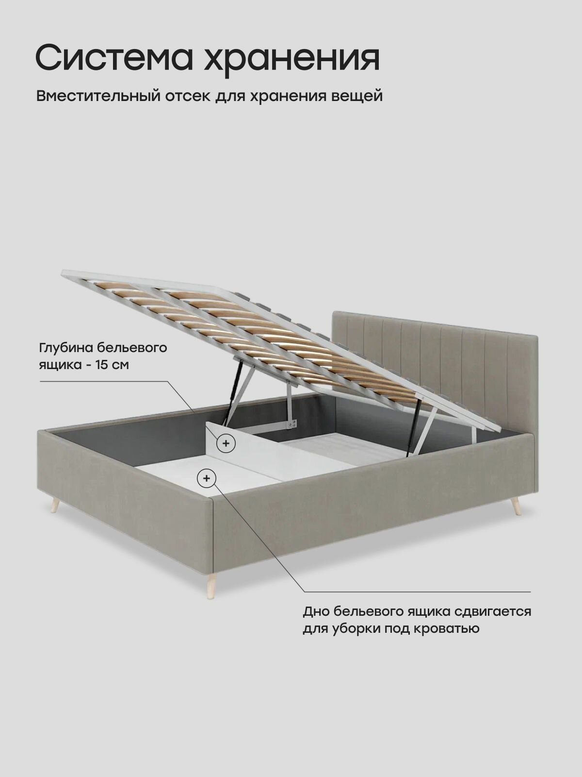 Отзывы на Двуспальная кровать 160х200 с подъемным механизмом, "TERK" с мягким изголовьем. Велюр серый Dakota 24