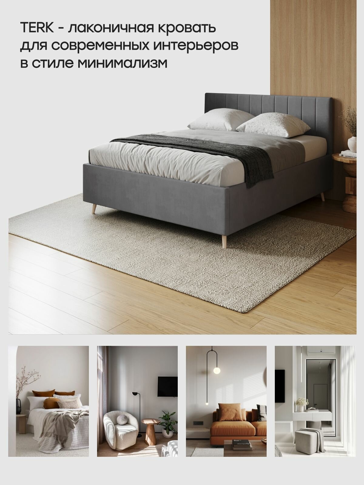 Двуспальная кровать 120х200 "TERK" с мягким изголовьем для дома, для спальни. Велюр серый Dakota 24 27 754 ₽
