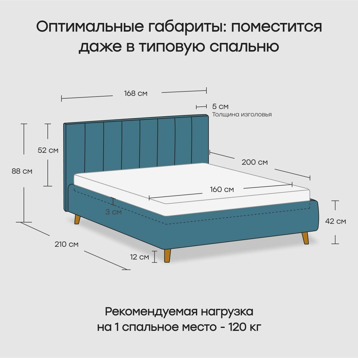 Отзывы на Двуспальная кровать 160х200 "TERK" с мягким изголовьем для дома, для спальни. Велюр темно-синий Dakota 19