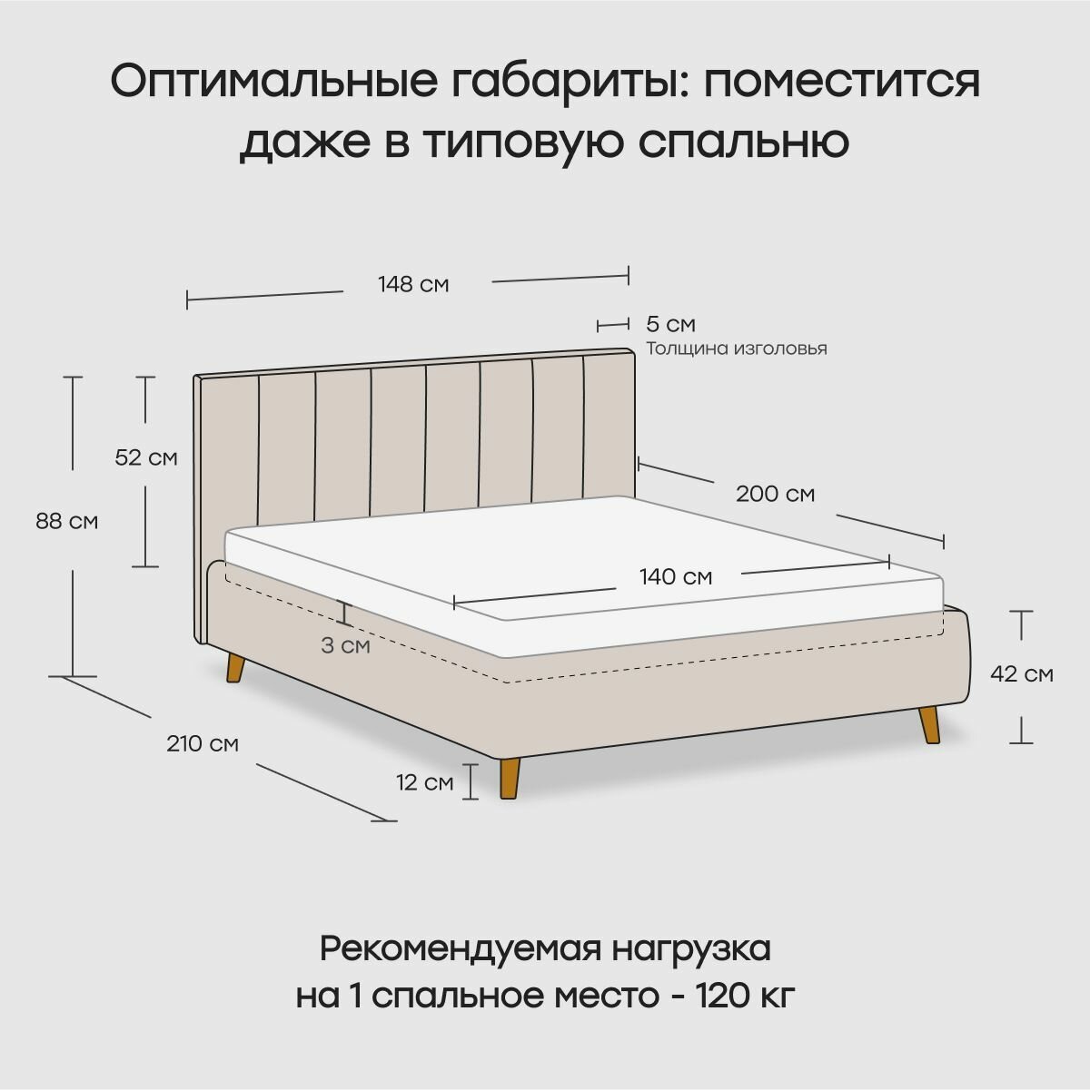 Двуспальная кровать 120х200 "TERK" с мягким изголовьем для дома, для спальни. Велюр серый Dakota 24 27 754 ₽
