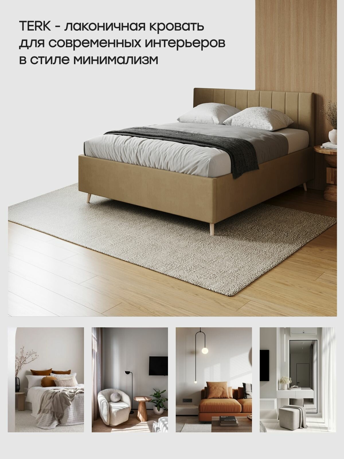 Двуспальная кровать 140х200 "TERK" с мягким изголовьем для дома, для спальни. Велюр серый Dakota 24 29 372 ₽