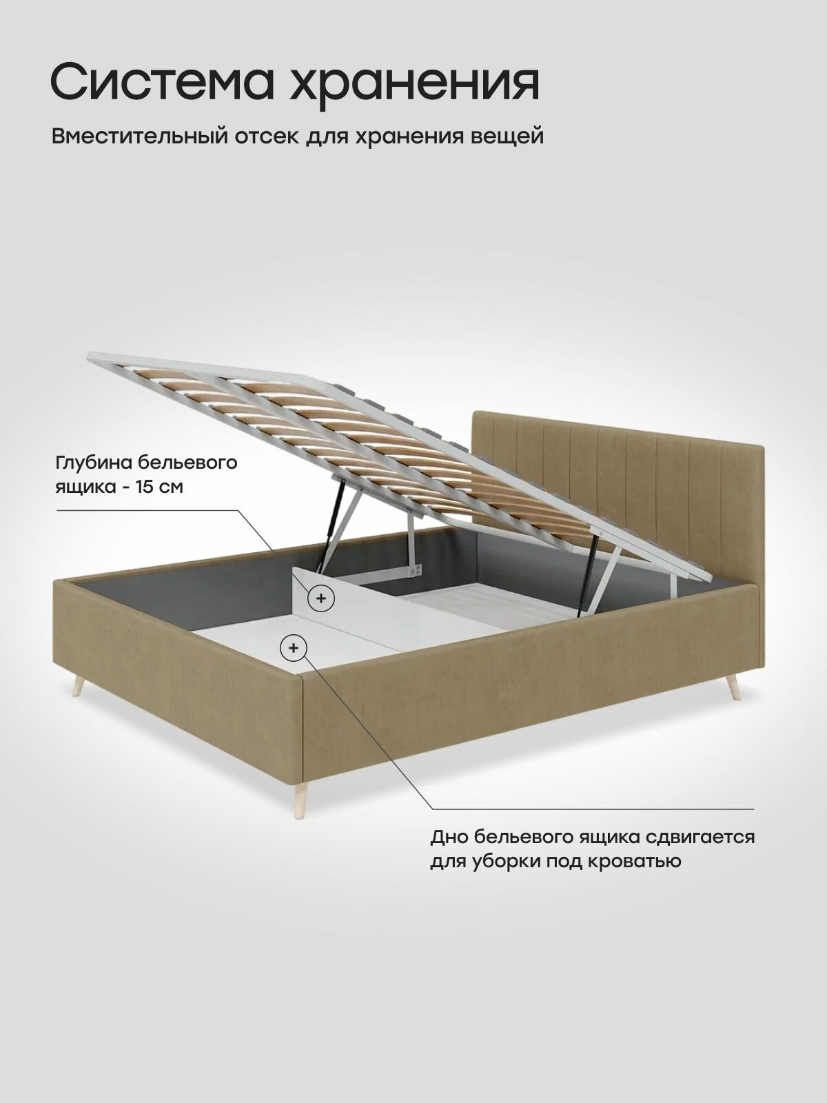 Двуспальная кровать 120х200 с подъемным механизмом, "TERK" с мягким изголовьем, на высоких ножках, ортопедическое основание, с ящиком для белья. Велюр темно-серый Dakota 23 31 451 ₽