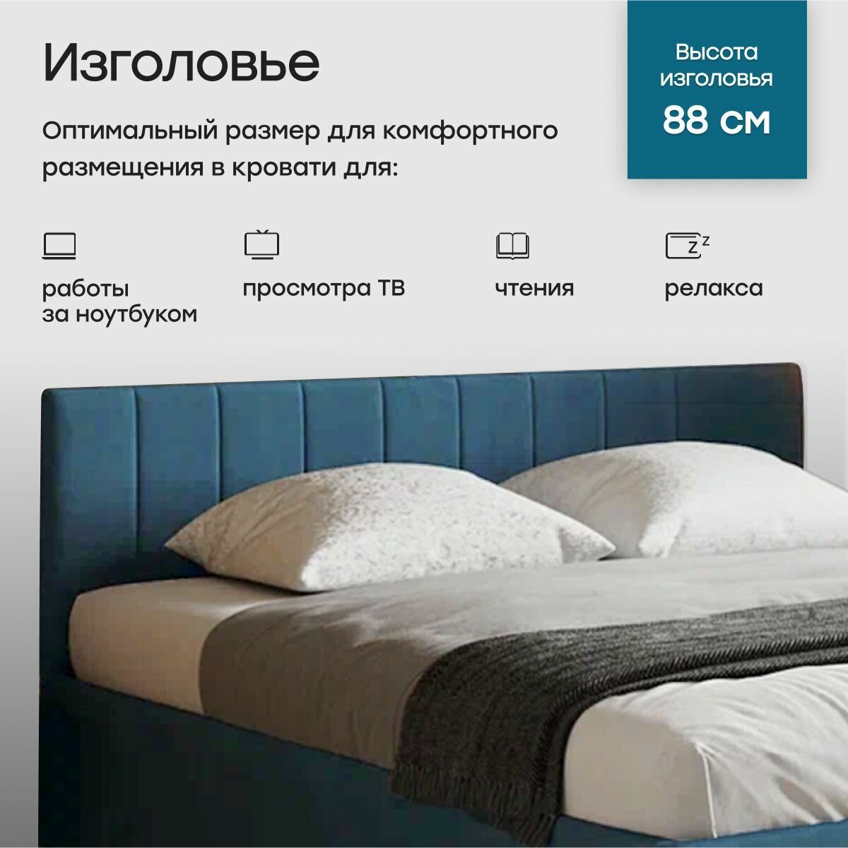 Двуспальная кровать 120х200 с подъемным механизмом, "TERK" с мягким изголовьем, на высоких ножках, ортопедическое основание, с ящиком для белья. Велюр цвет морская волна Dakota 19 31 451 ₽