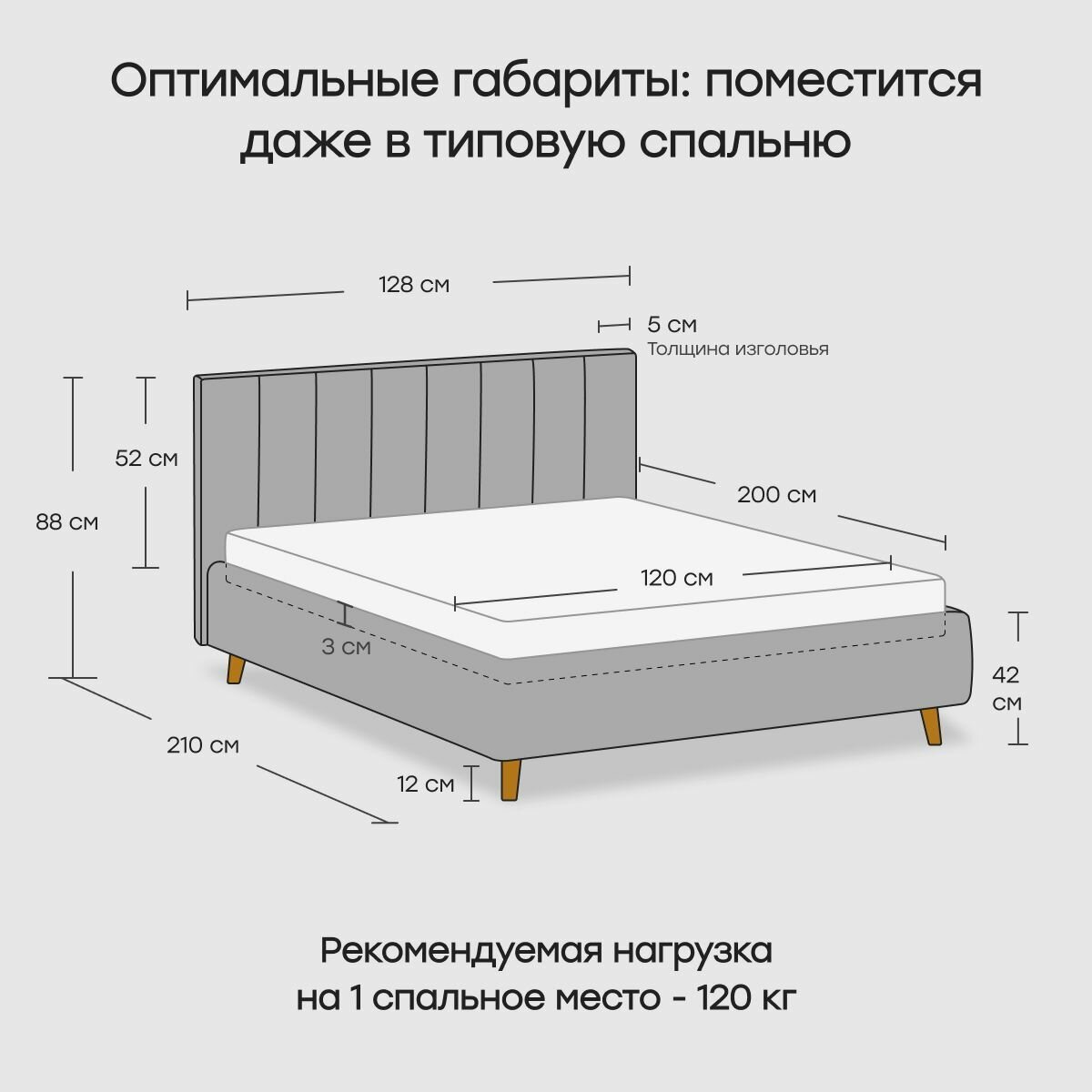 Отзывы на Двуспальная кровать 120х200 "TERK" с мягким изголовьем для дома, для спальни. Велюр темно-серый Dakota 23