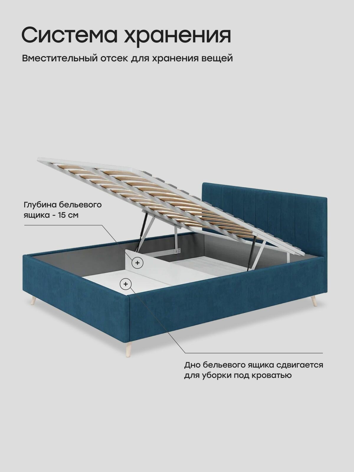 Отзывы на Двуспальная кровать 140х200 с подъемным механизмом, "TERK" с мягким изголовьем. Велюр цвет морская волна Dakota 19