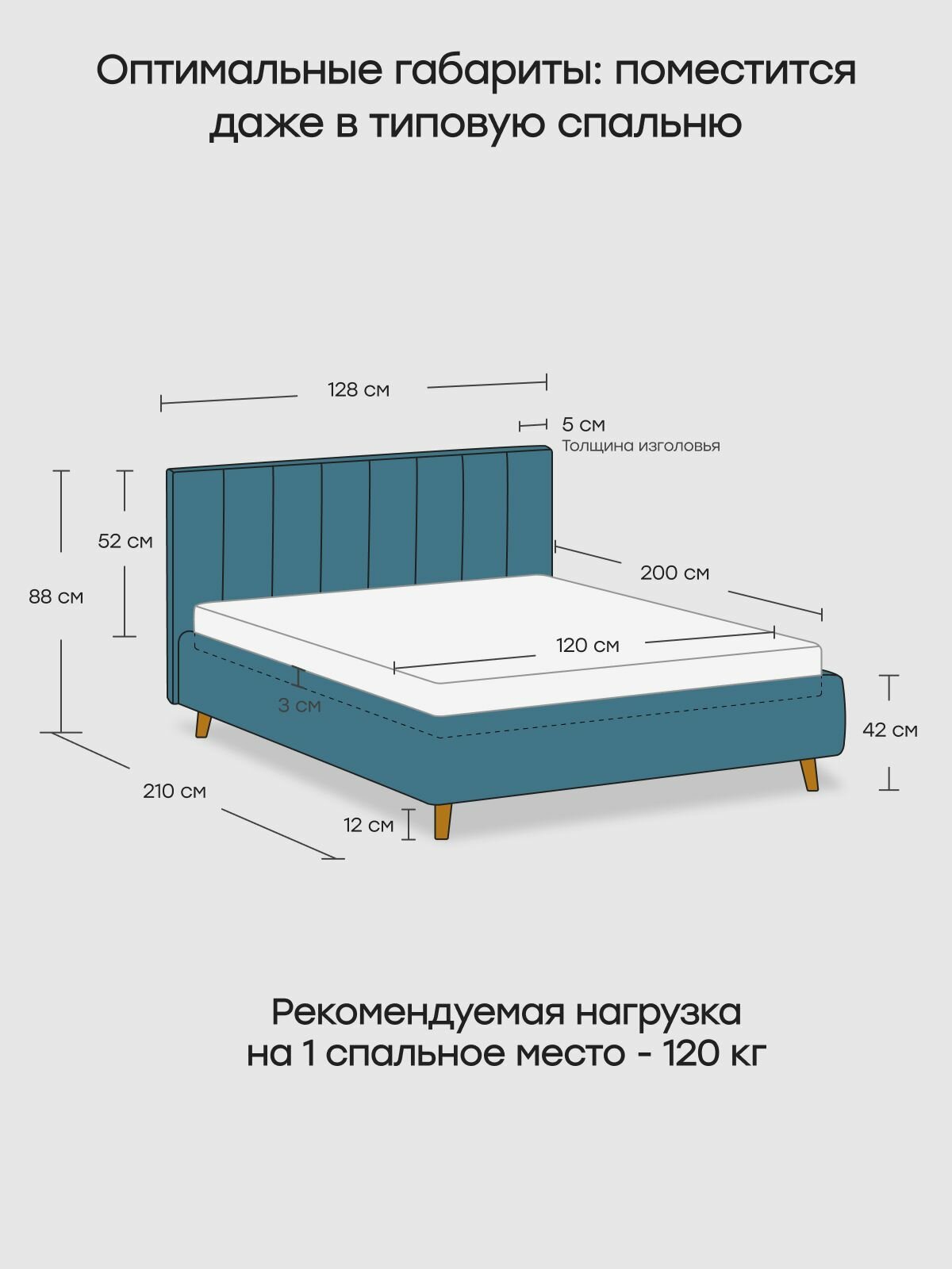 Двуспальная кровать 120х200 "TERK" с мягким изголовьем для дома, для спальни. Велюр голубой Dakota 18 26 800 ₽
