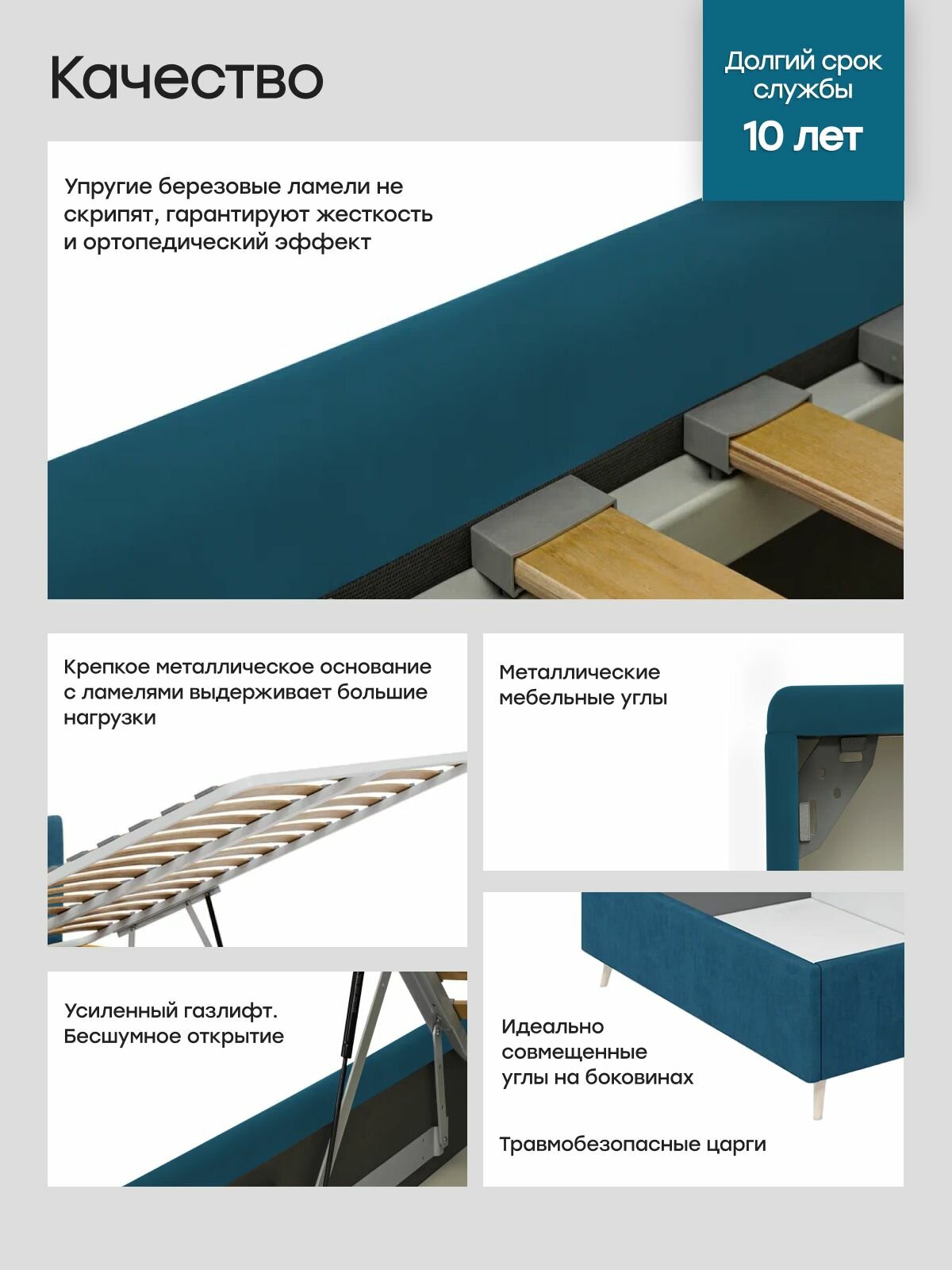 Отзывы на Двуспальная кровать 120х200 с подъемным механизмом, "TERK" с мягким изголовьем, на высоких ножках, ортопедическое основание, с ящиком для белья. Велюр цвет морская волна Dakota 19