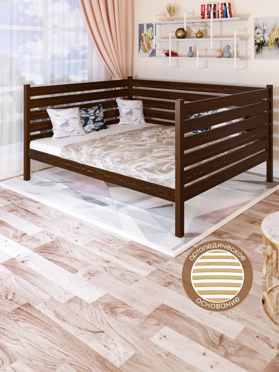 10 цен на Тахта двуспальная из массива сосны с ортопедическим основанием и высокими бортиками, 160х200 см (габариты 170х210), цвет темного дуба