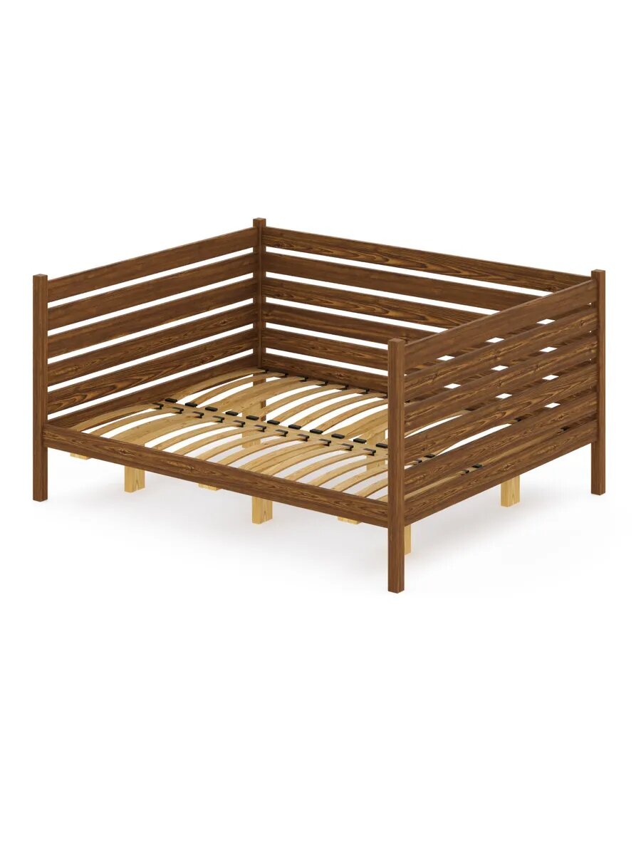 Тахта двуспальная из массива сосны с ортопедическим основанием и высокими бортиками, 160х200 см (габариты 170х210), цвет темного дуба информация: