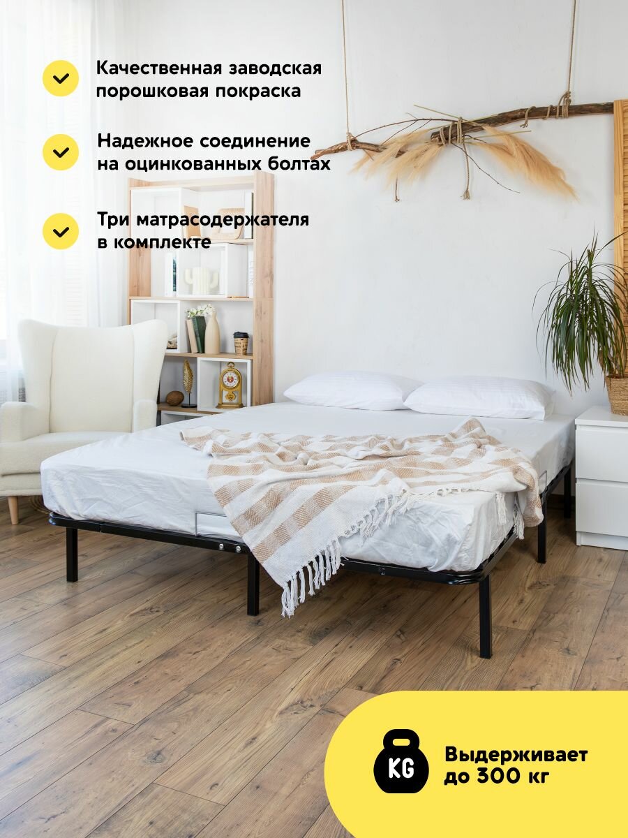 Кровать двуспальная 140х200 см Румба, металлическая с ортопедическим основанием, цвет черный 8 000 ₽