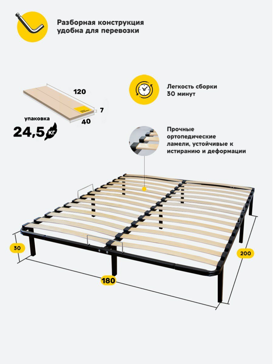 Отзывы на Кровать двуспальная 180х200 см Румба, металлическая с ортопедическим основанием, цвет черный