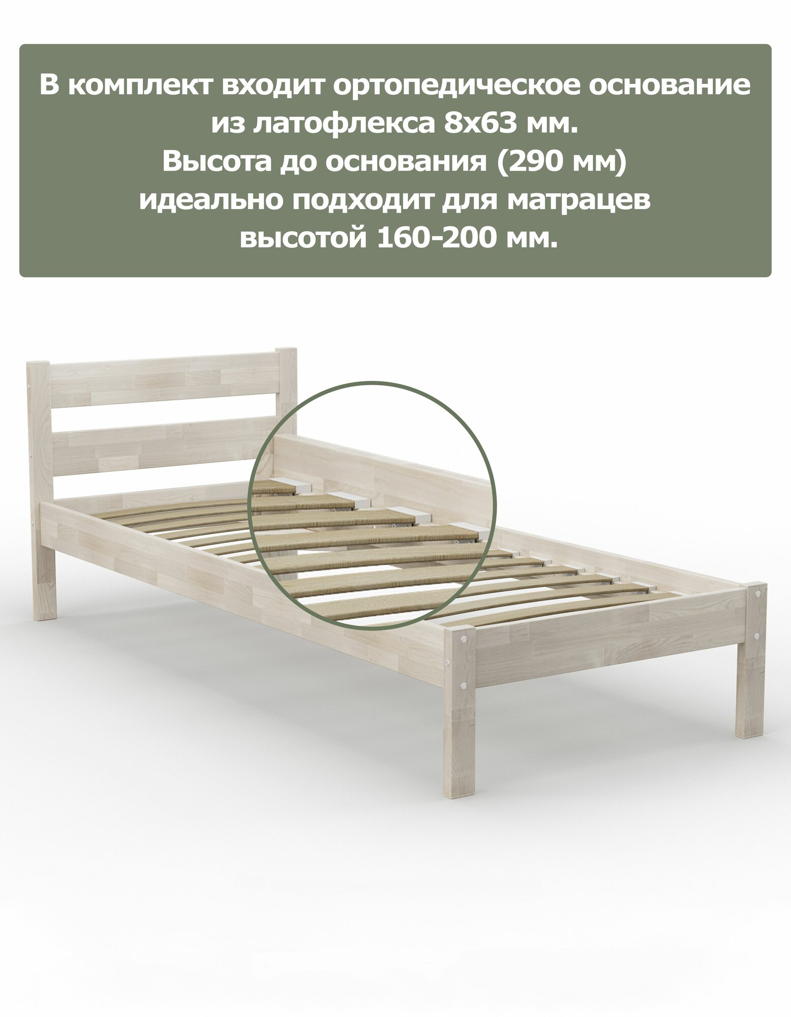 10 цен на Кровать односпальная, 200х90см, Массив березы, Бесцветное масло, тилия