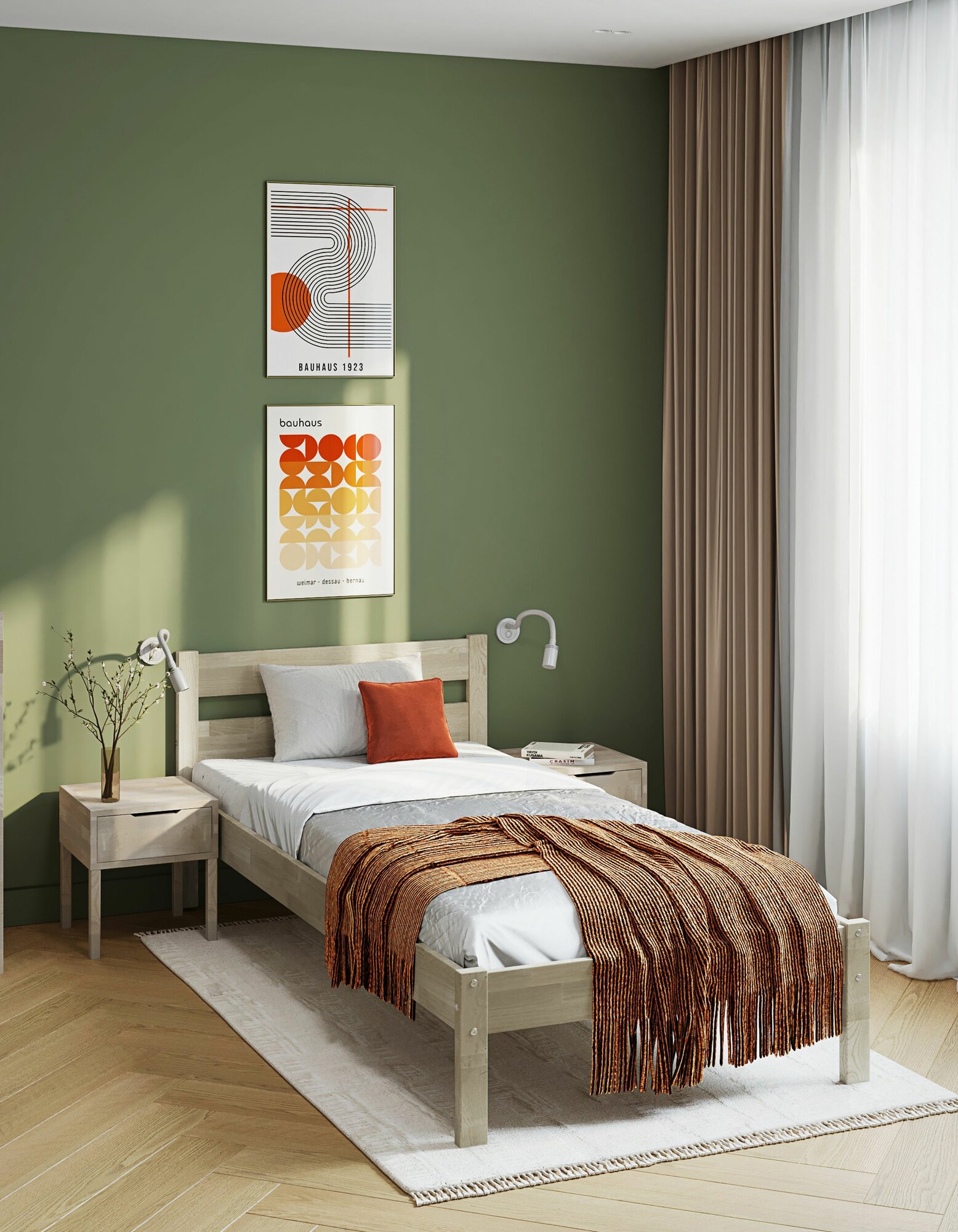 Кровать односпальная, 160х80см, Массив березы, Бесцветное масло, тилия 11 360 ₽