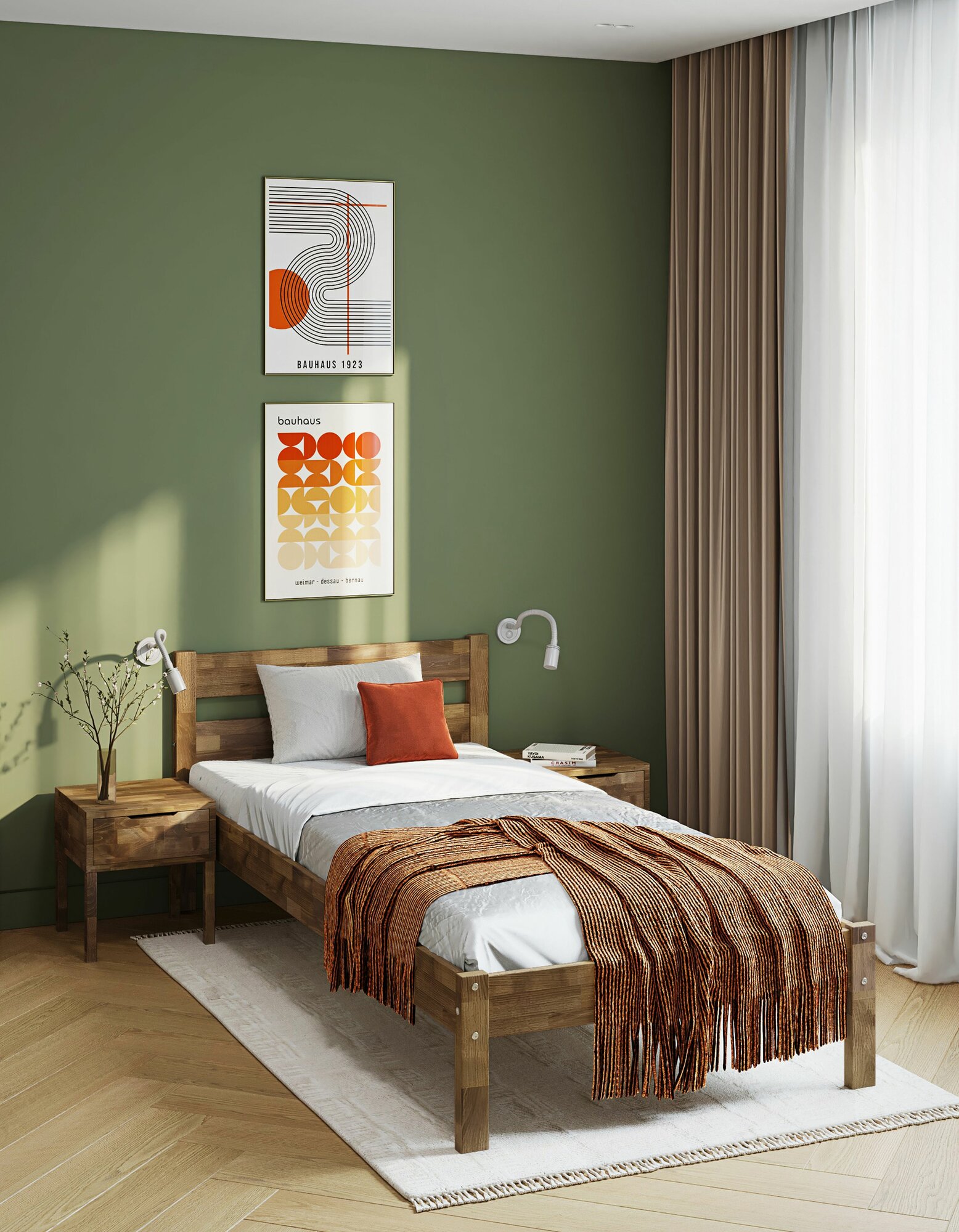 Кровать односпальная, 200х80см, Массив березы, Темный дуб, тилия 12 390 ₽