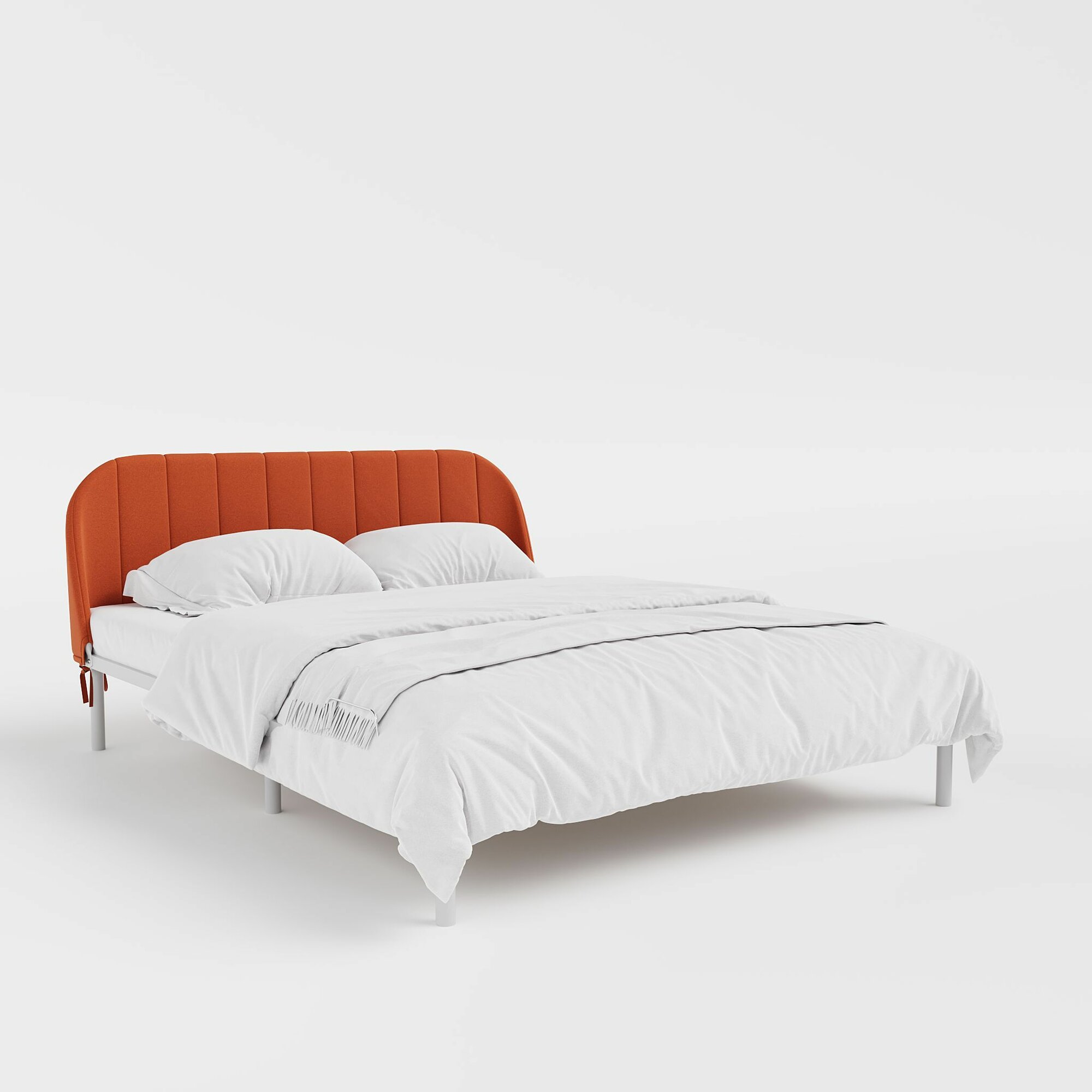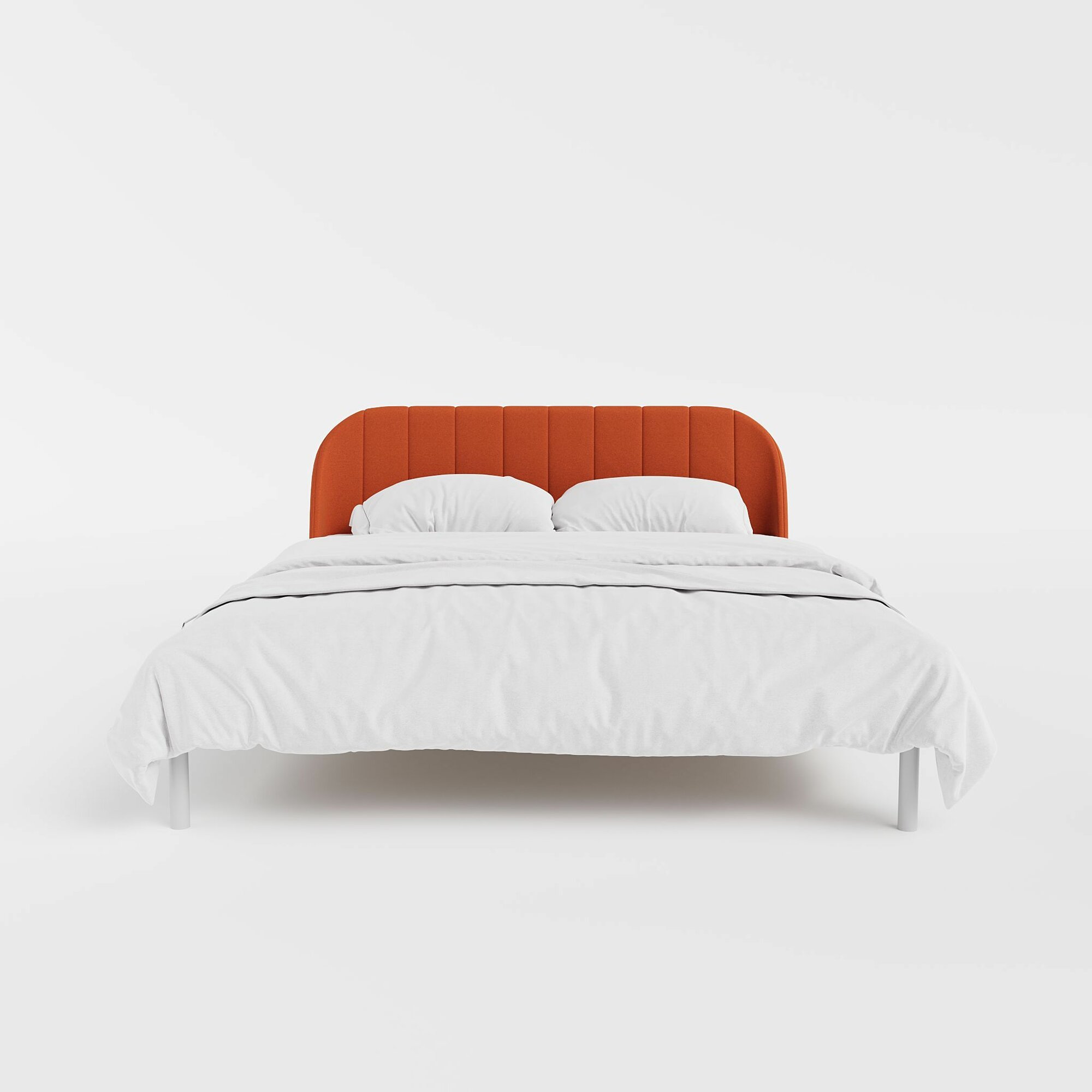 Отзывы на Двуспальная белая кровать металлическая 160х200 "Эльба", велюр Velutto оранжевый, белый каркас, DreamLite