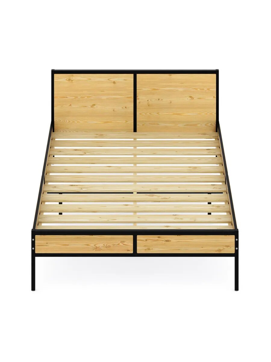 Кровать двуспальная Лофт с реечным основанием, цвет ольхи с черным металлическим каркасом, 140х200 см 23 003 ₽