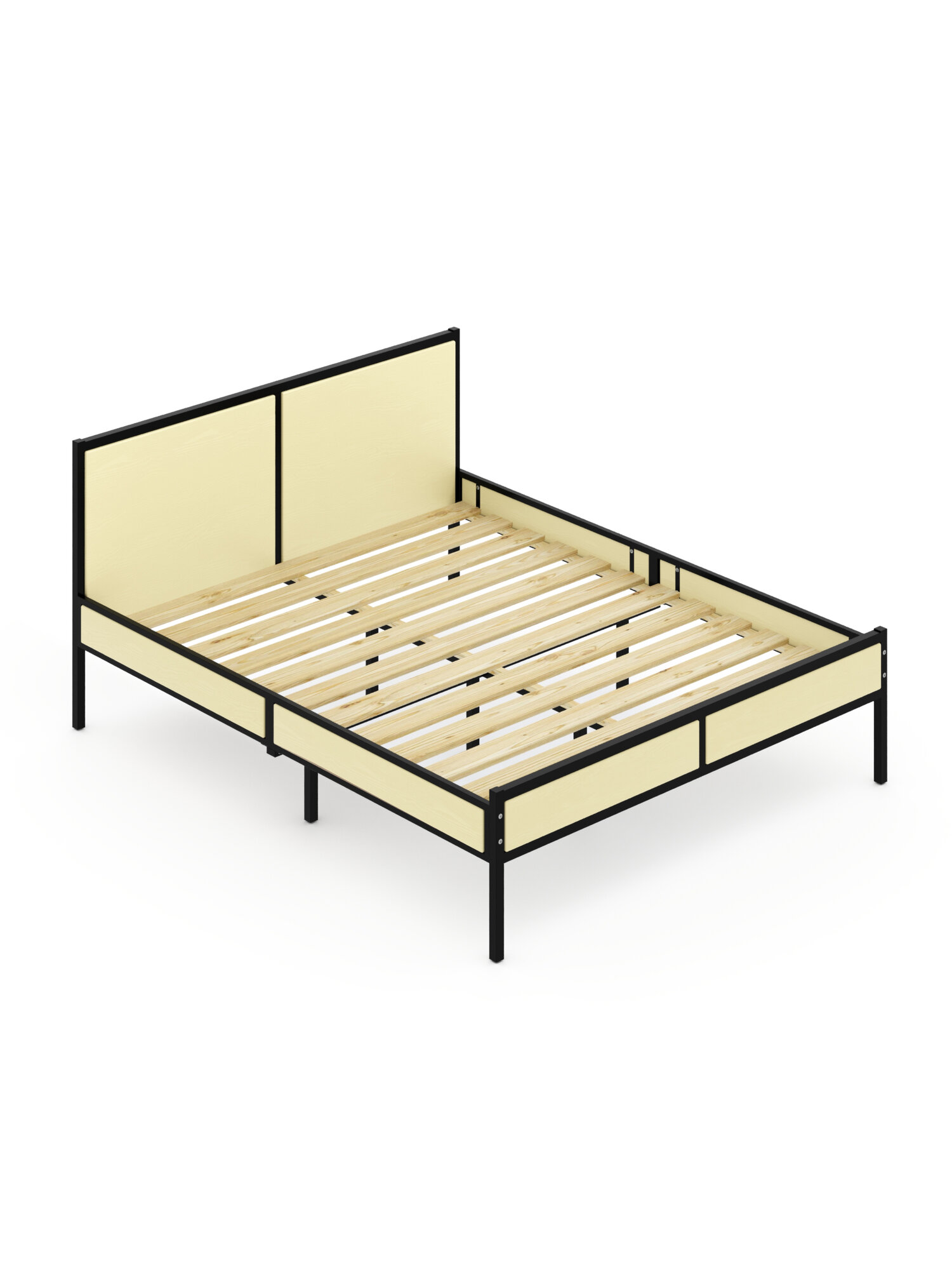 Кровать двуспальная Лофт с реечным основанием, цвет ванили с черным металлическим каркасом, 120х200 см информация: