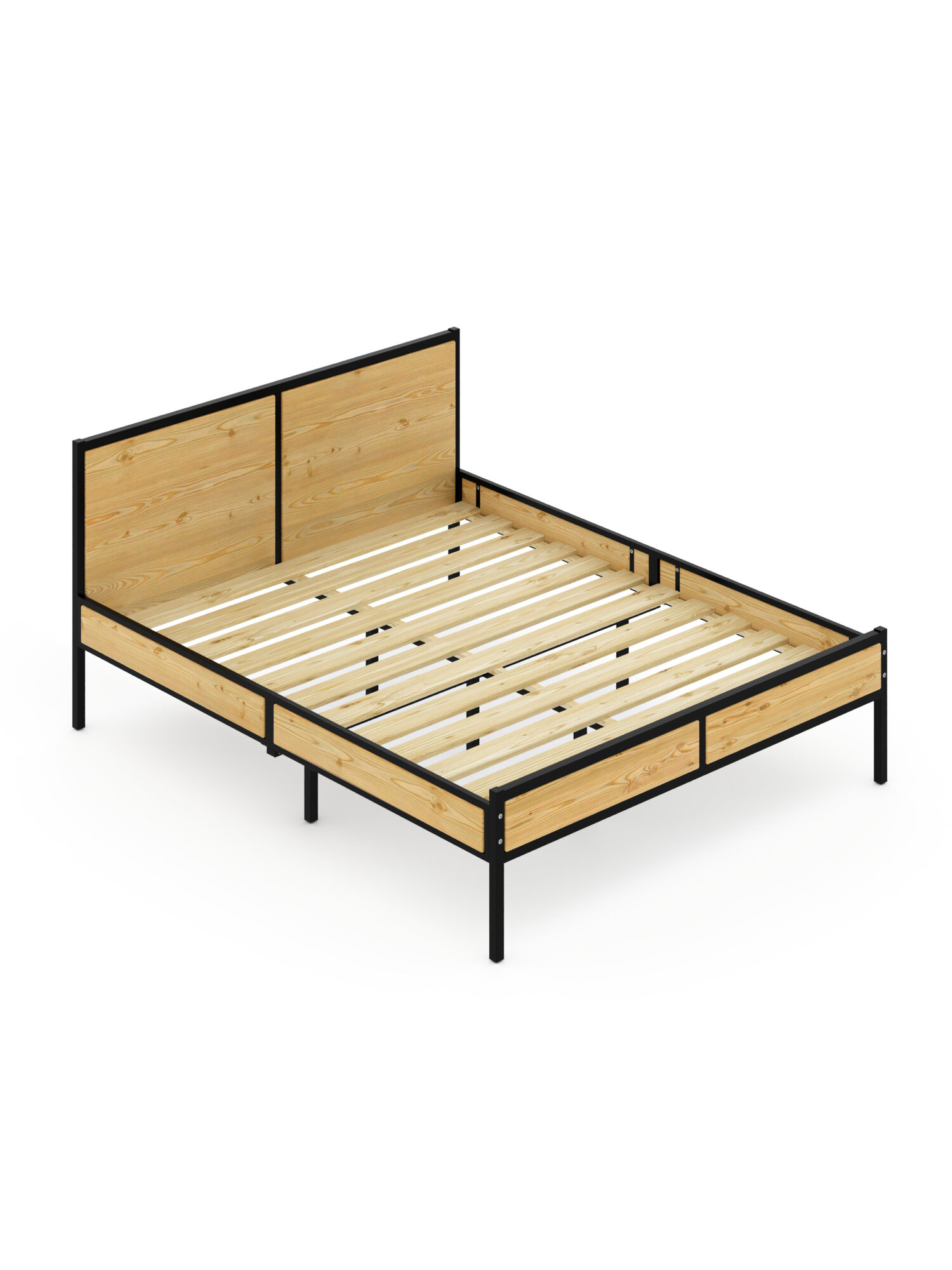 Кровать двуспальная Лофт с реечным основанием, без шлифовки и покраски с черным металлическим каркасом, 120х200 см информация: