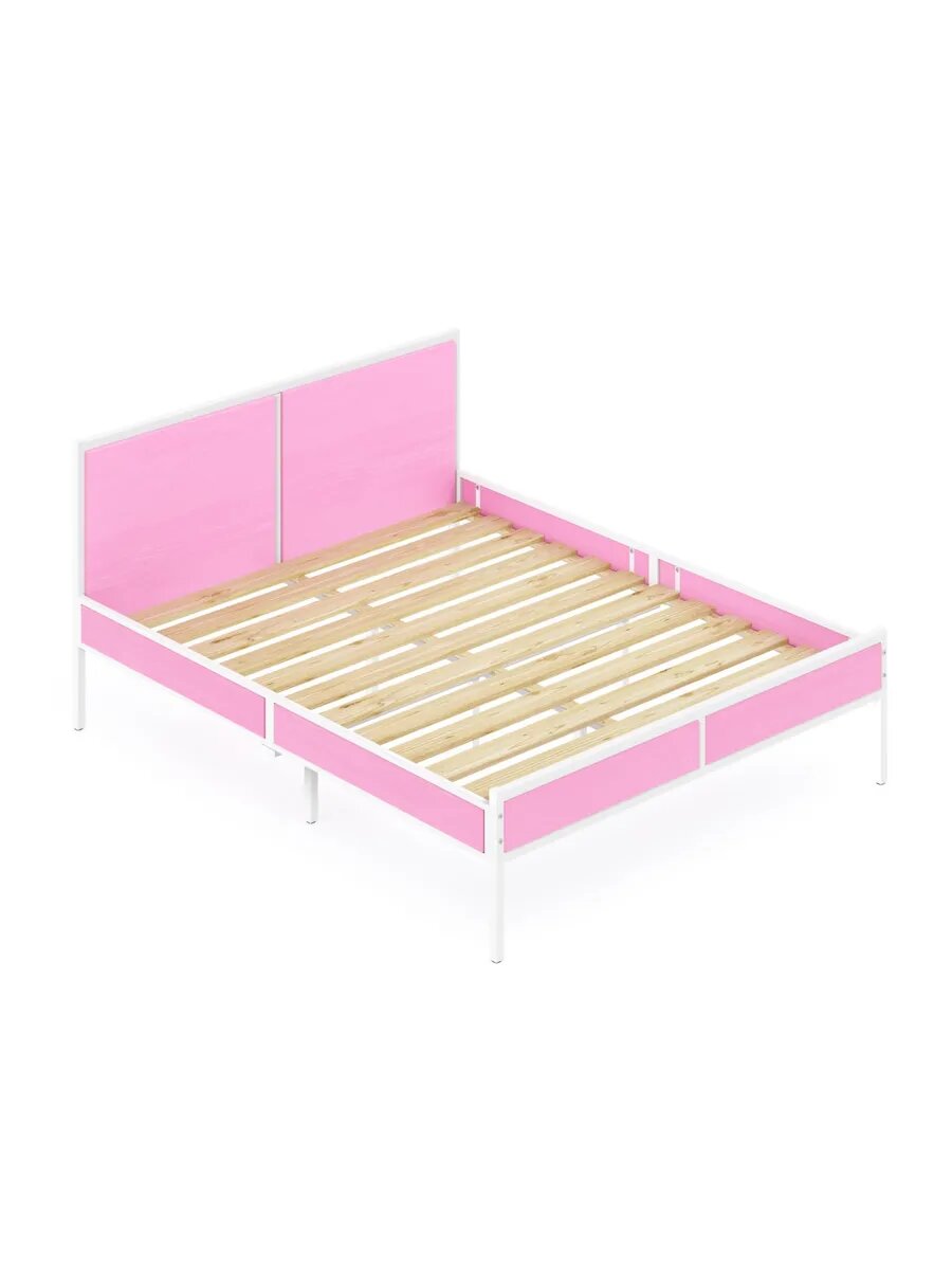 Кровать двуспальная Лофт с реечным основанием, цвет розовый с белым металлическим каркасом, 140х200 см 23 714 ₽