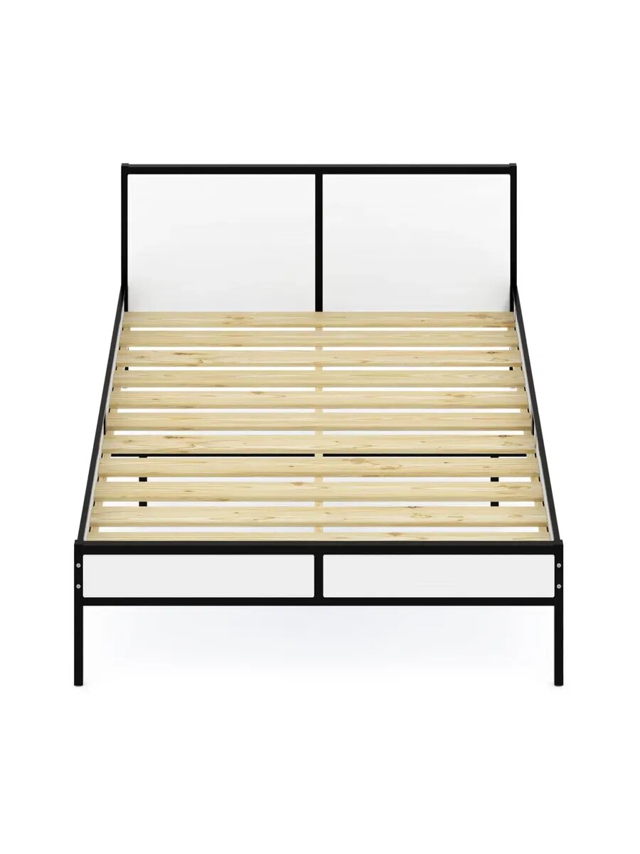 Кровать двуспальная Лофт с реечным основанием, цвет белый с черным металлическим каркасом, 140х200 см информация: