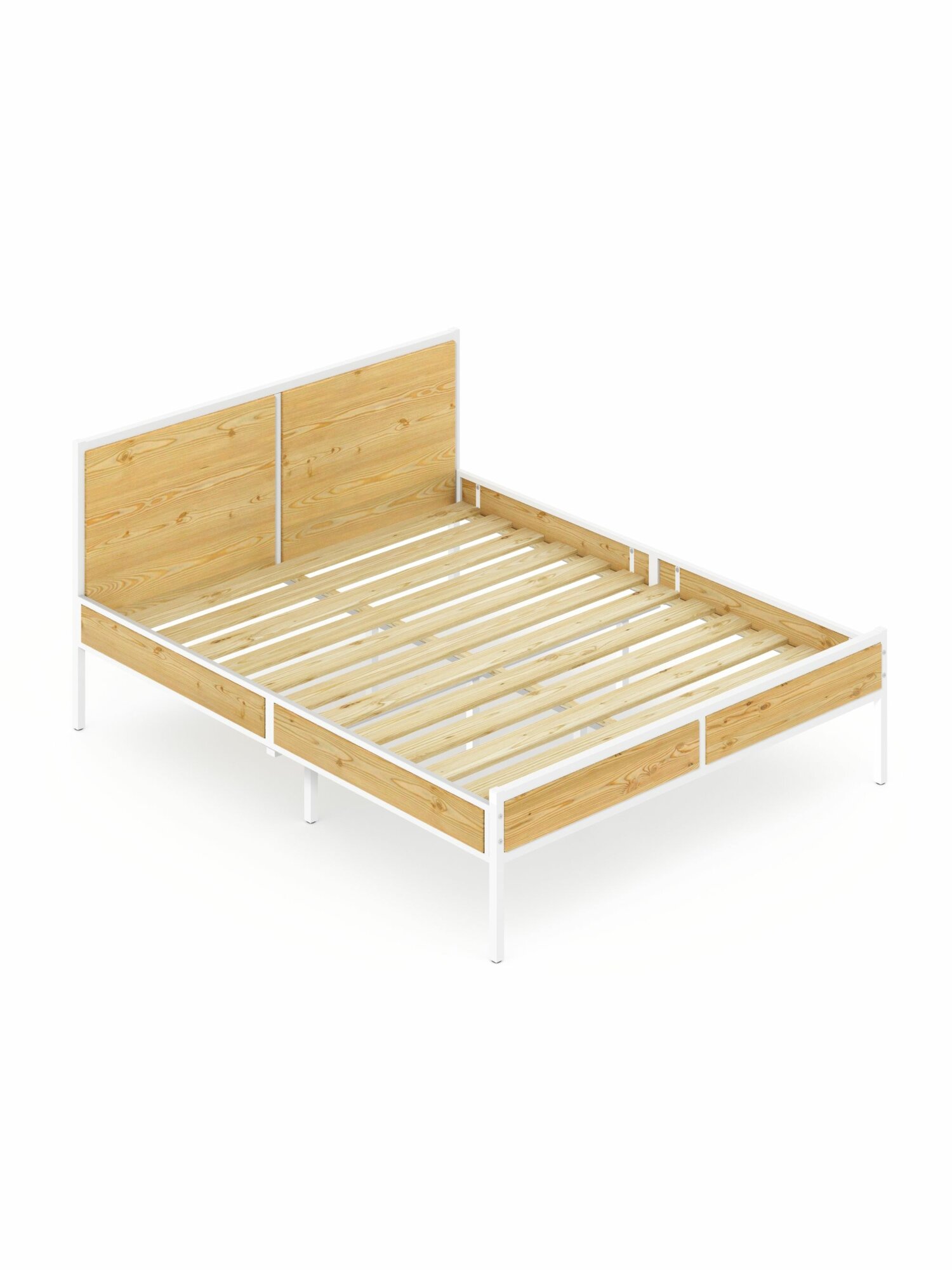 Кровать двуспальная Лофт с реечным основанием, без шлифовки и покраски с белым металлическим каркасом, 180х200 см 21 301 ₽