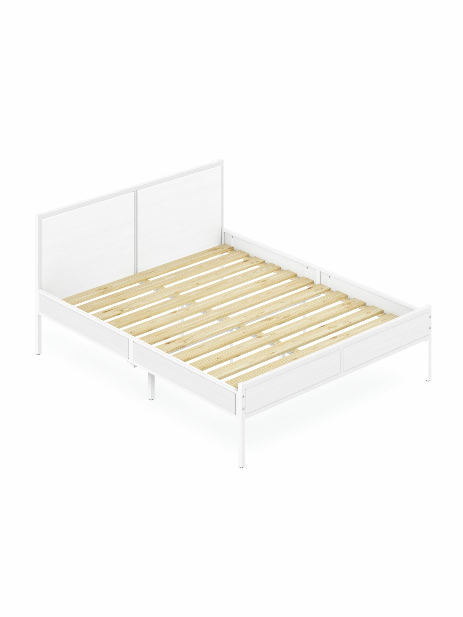 Кровать двуспальная Лофт с реечным основанием, без шлифовки и покраски с белым металлическим каркасом, 180х200 см 21 301 ₽