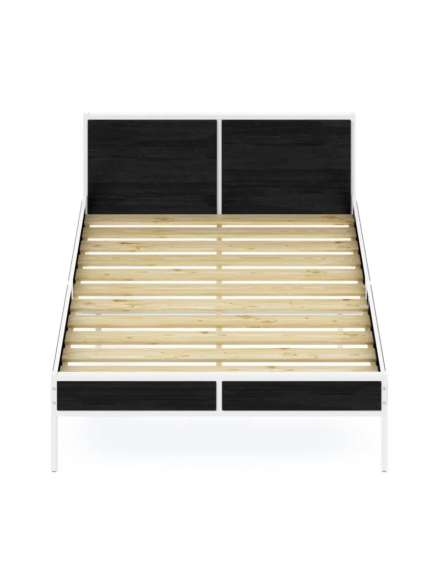 Кровать двуспальная Лофт с реечным основанием, цвет черного оникса с белым металлическим каркасом, 120х200 см 22 997 ₽