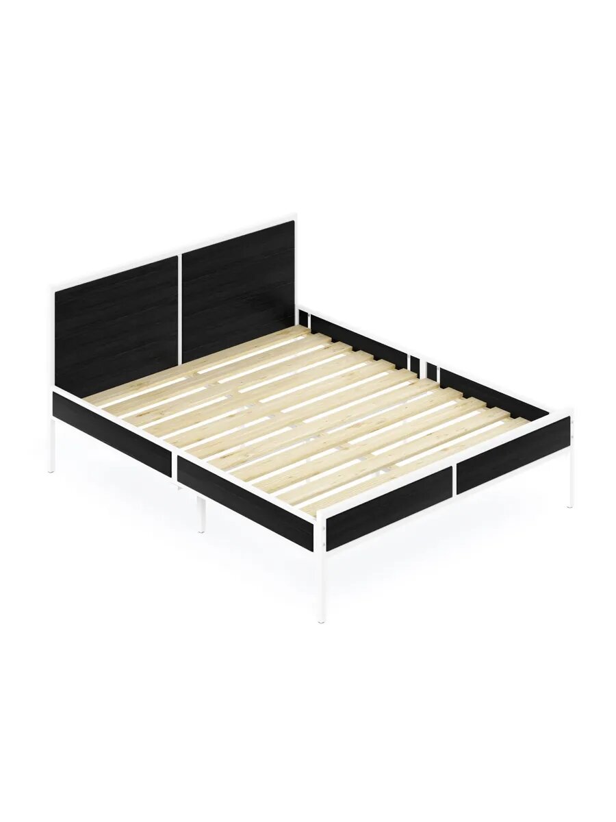Кровать двуспальная Лофт с реечным основанием, цвет черного оникса с белым металлическим каркасом, 160х200 см 24 431 ₽