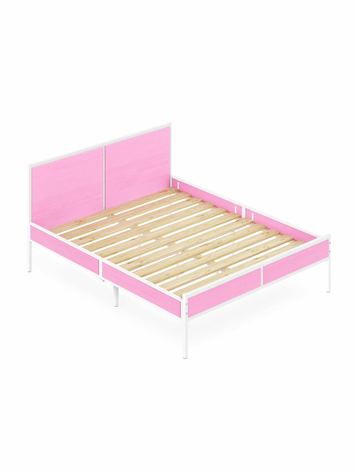Кровать двуспальная Лофт с реечным основанием, цвет розовый с белым металлическим каркасом, 180х200 см 24 394 ₽