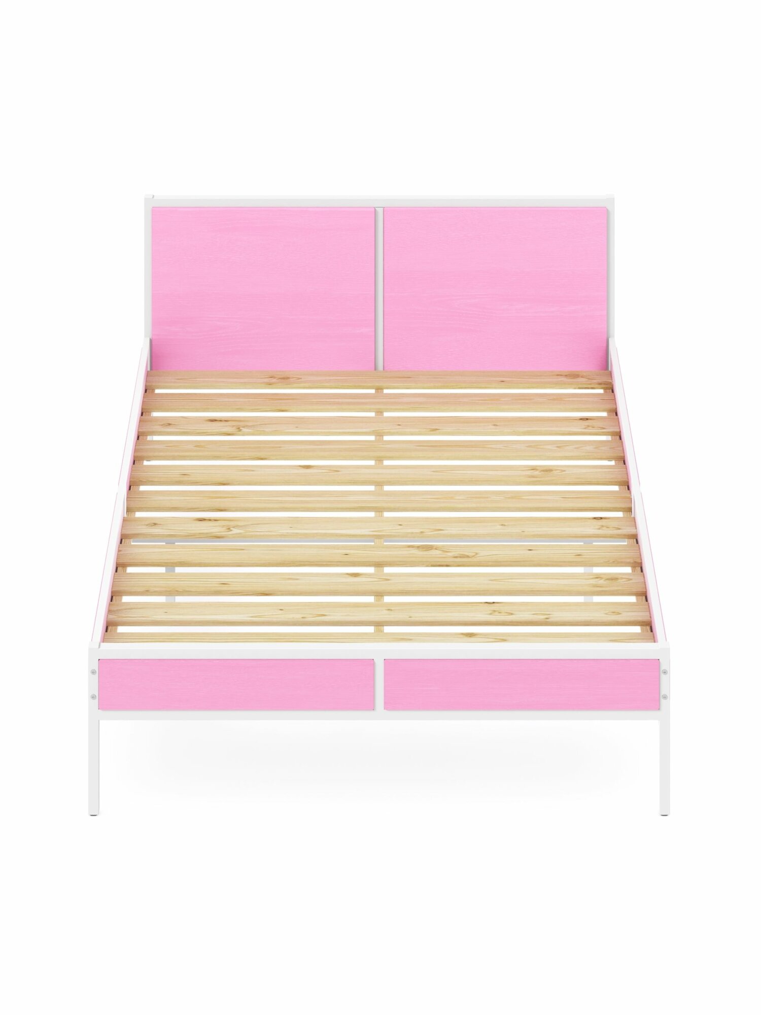 Кровать двуспальная Лофт с реечным основанием, цвет розовый с белым металлическим каркасом, 120х200 см 22 997 ₽