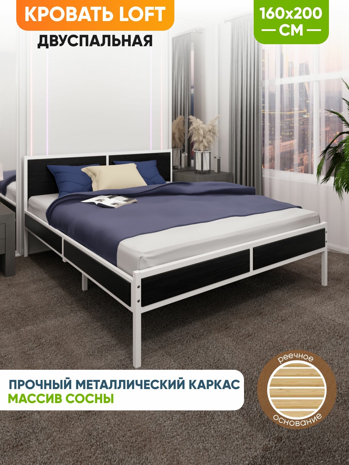 Кровать двуспальная Лофт с реечным основанием, цвет черного оникса с белым металлическим каркасом, 160х200 см информация: