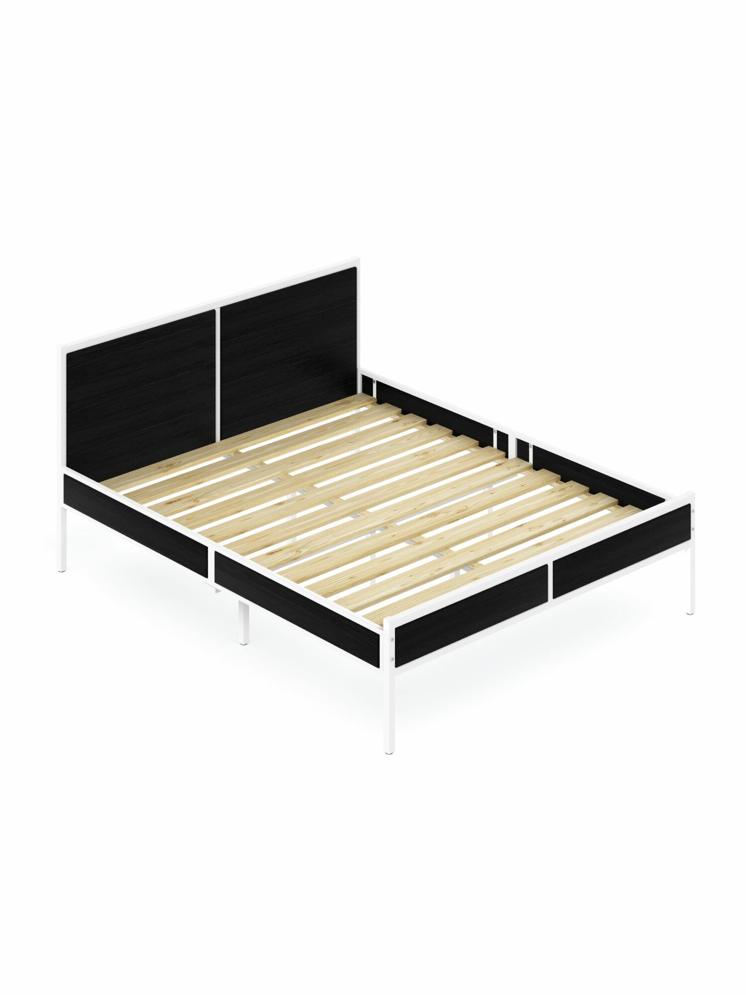 10 цен на Кровать двуспальная Лофт с реечным основанием, цвет черного оникса с белым металлическим каркасом, 160х200 см