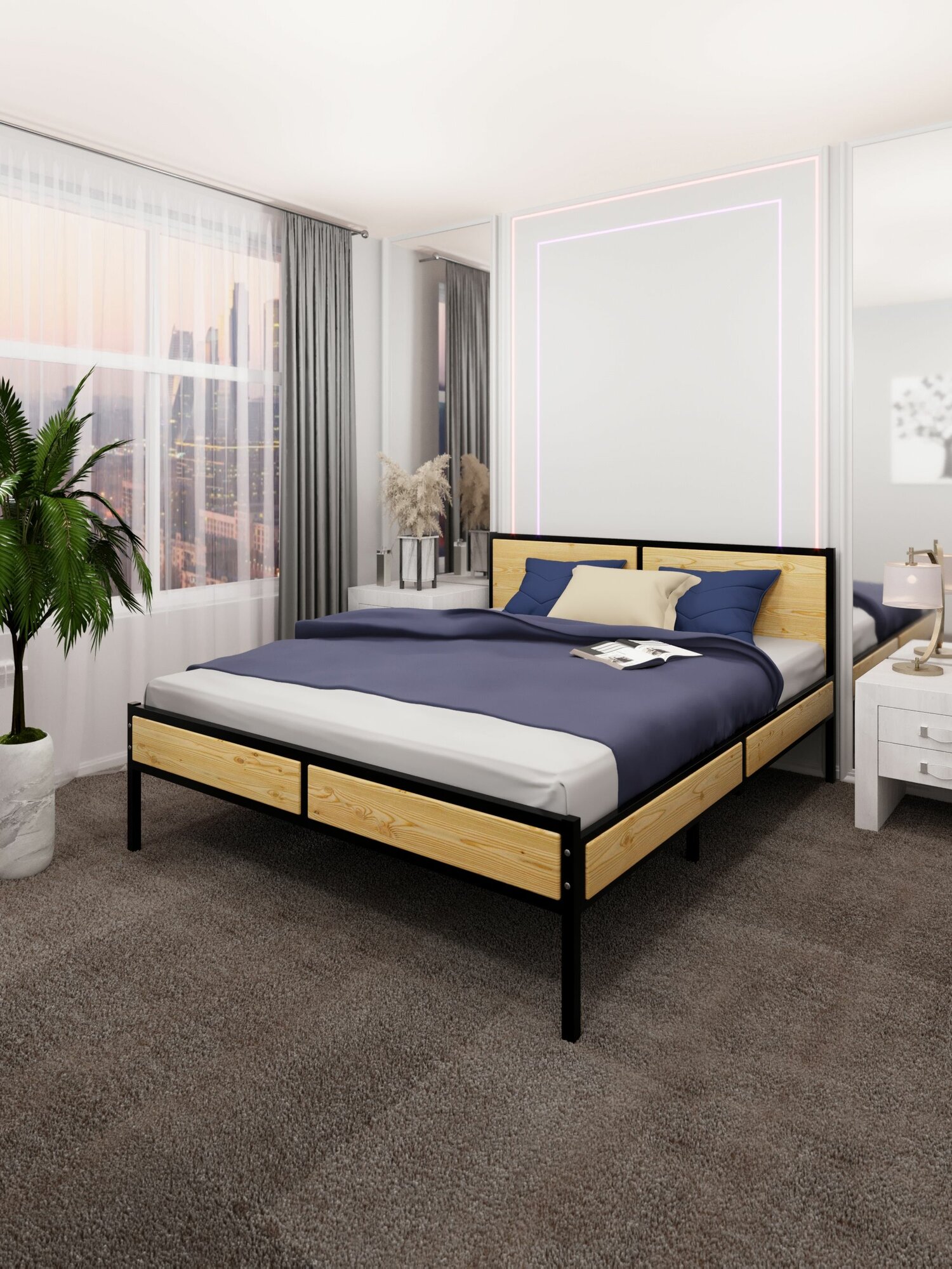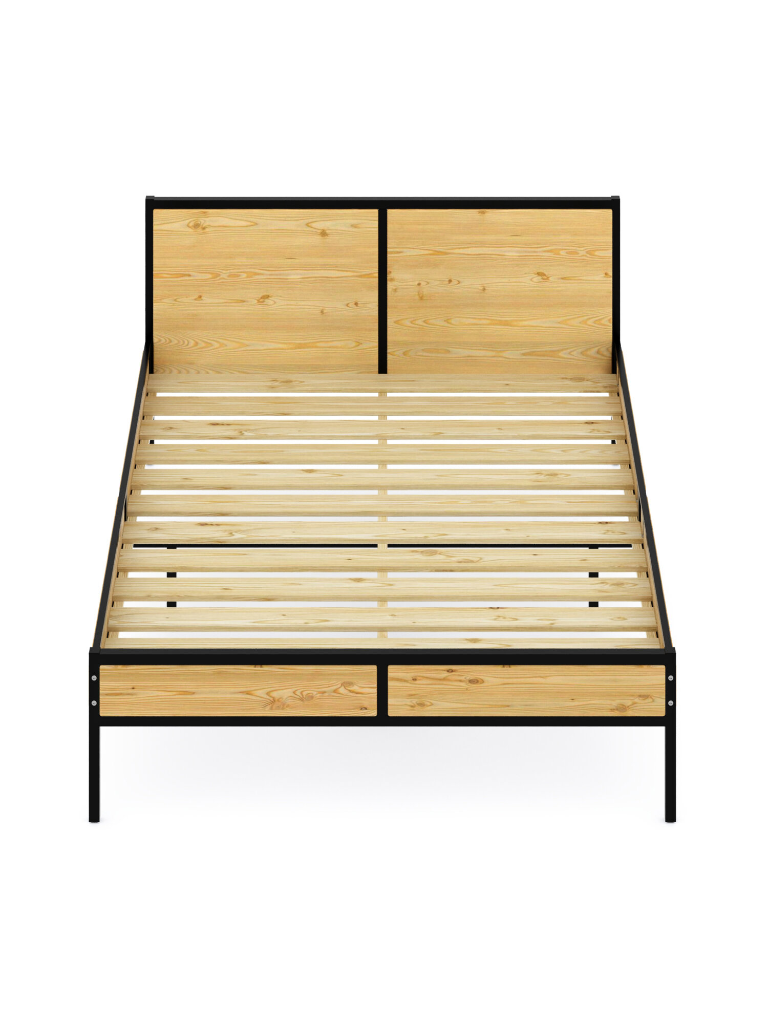 10 цен на Кровать двуспальная Лофт с реечным основанием, без покраски с черным металлическим каркасом, 120х200 см