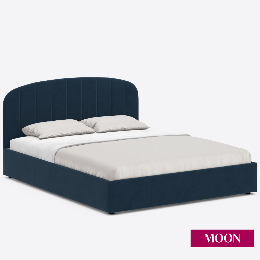 10 цен на Кровать двуспальная с подъемным механизмом, MOON FAMILY 1262, размер 180х200 см, велюр темно-синий. Ортопедическое основание в комплекте
