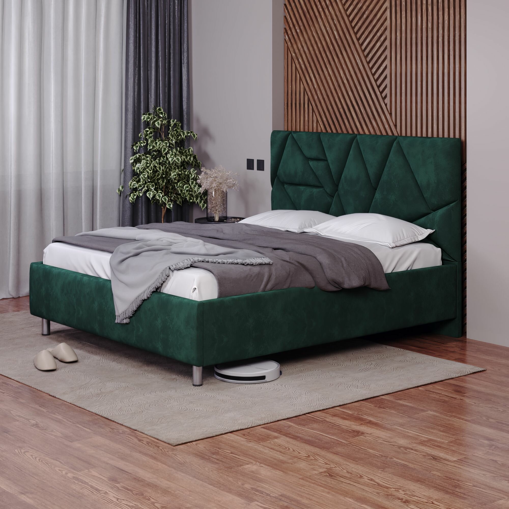 OKMebell Двуспальная кровать Shelby мягкое изголовье с размером спального места 140х200 с ортопедическим основанием и подъемным механизмом цвет Темный изумруд 27 100 ₽