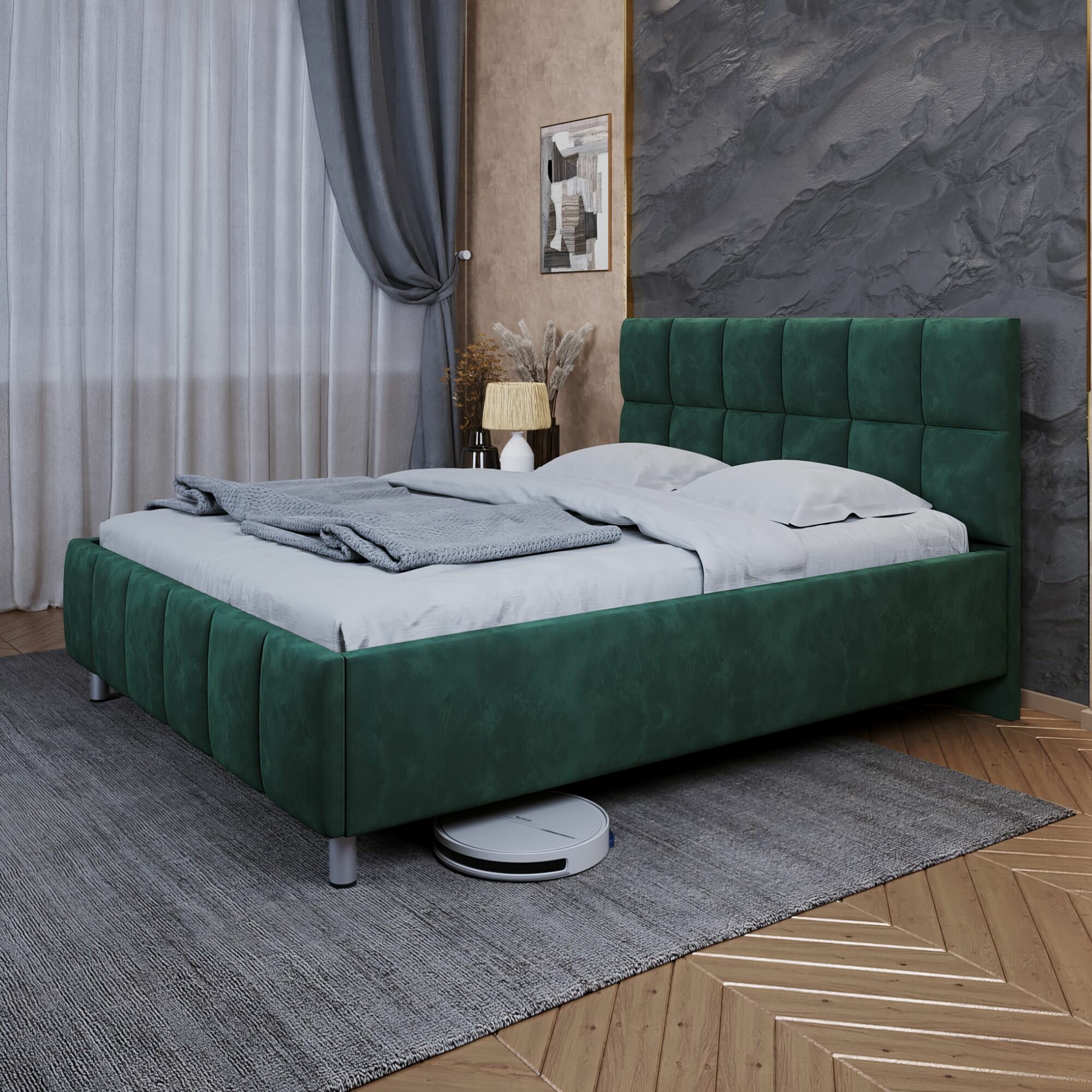OKMebell Двуспальная кровать Shelby мягкое изголовье с размером спального места 140х200 с ортопедическим основанием и подъемным механизмом цвет Темный изумруд 27 100 ₽
