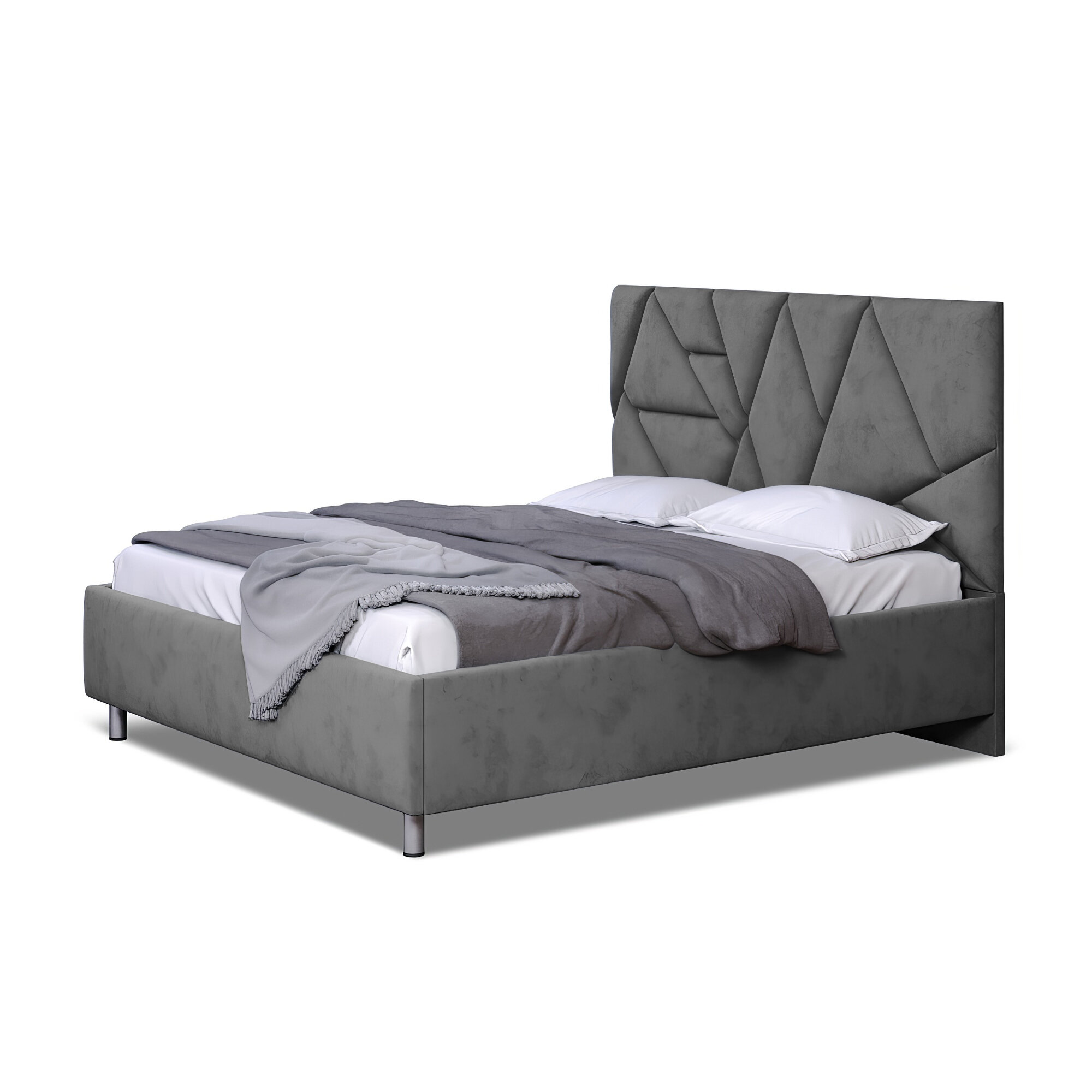 OKMebell Двуспальная кровать Shelby мягкое изголовье с размером спального места 140х200 с ортопедическим основанием и подъемным механизмом цвет Южная ночь информация: