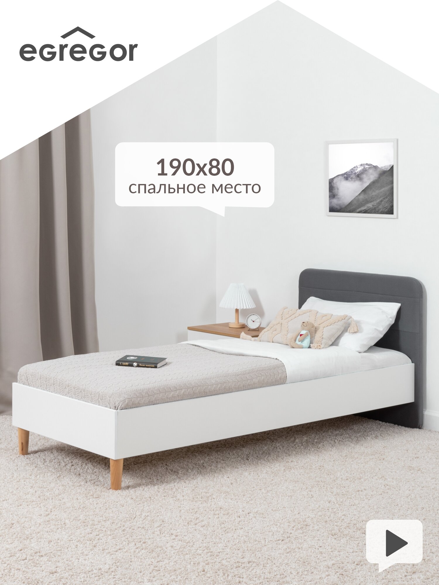 Кровать с мягким изголовьем для подростка Андерсон 11.45.01, Белый PE шагрень, Velutto 32 (стальной серый) информация: