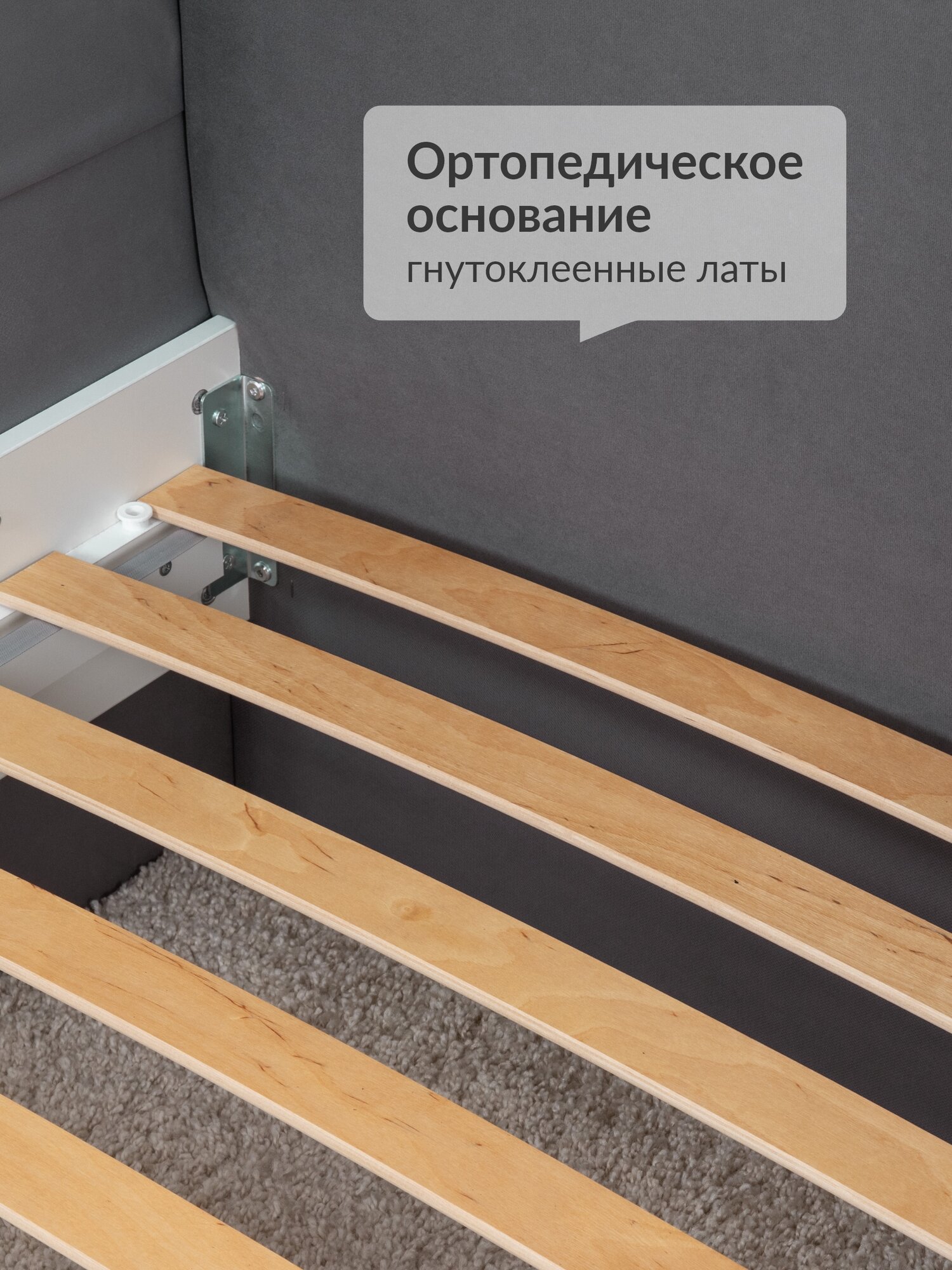 Кровать с мягким изголовьем для подростка Андерсон 11.45.01, Белый PE шагрень, Velutto 32 (стальной серый) 16 677 ₽
