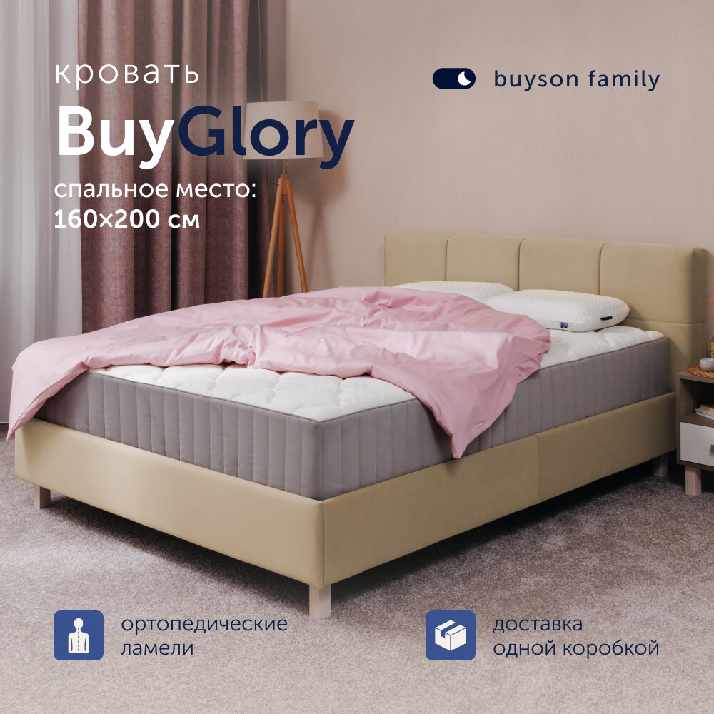 Отзывы на Двуспальная кровать buyson family BuyGlory 200х160 см, бежевый, микровелюр