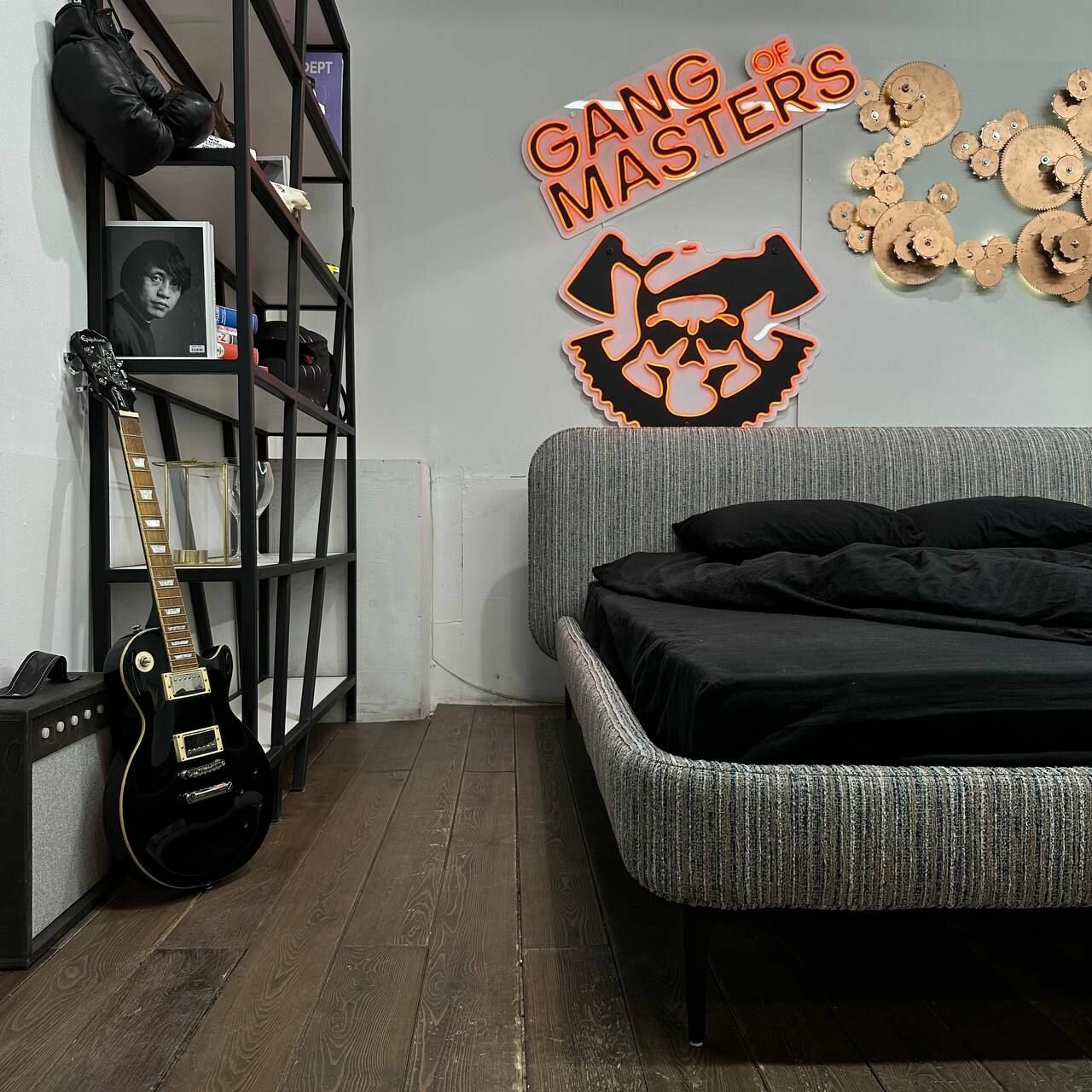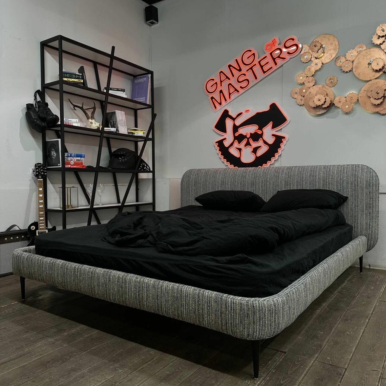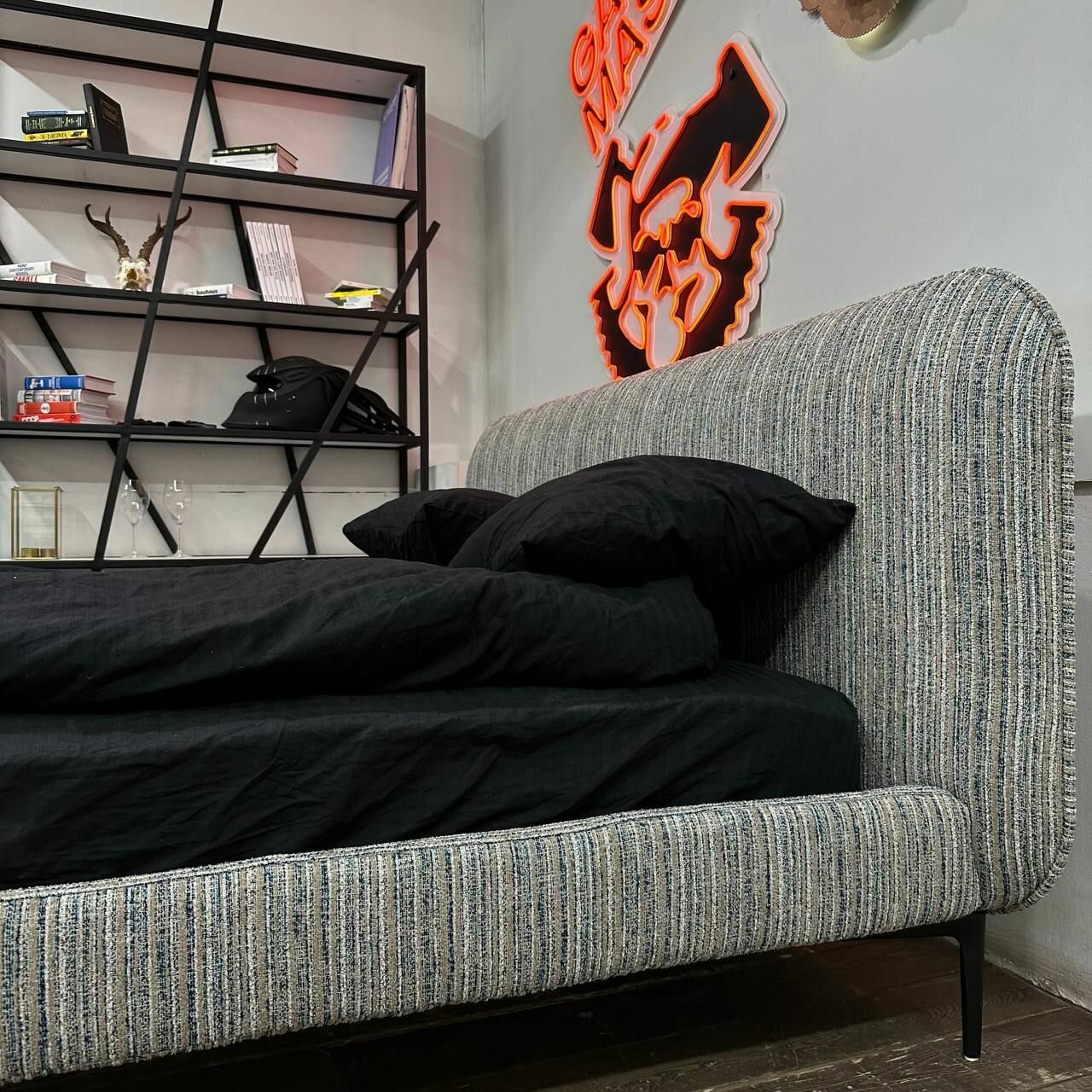 Кровать двуспальная «Скай» Банда мастеров, черно-белая рогожка, 160x200см 88 200 ₽