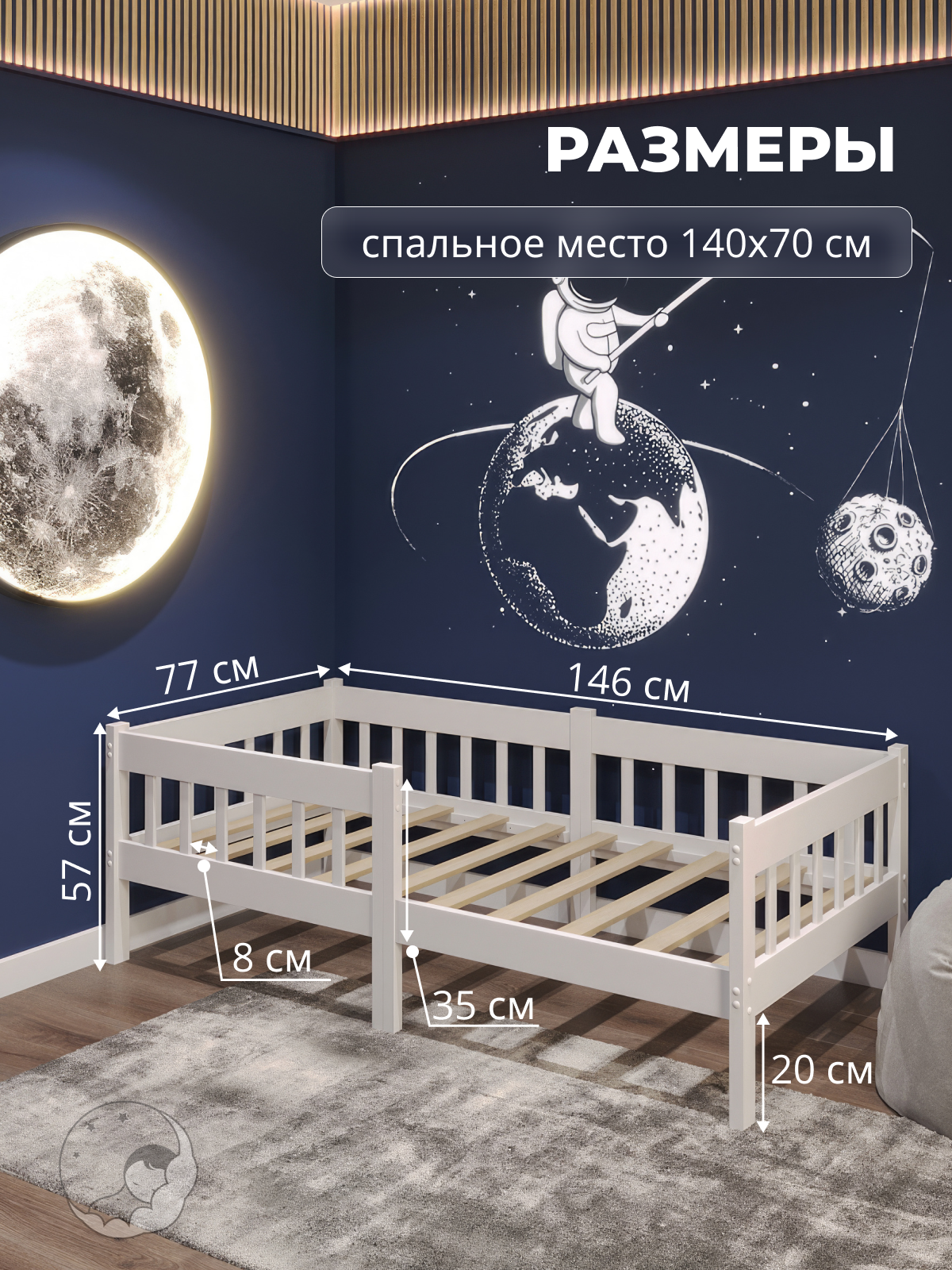 Кровать детская 140х70 с бортиком из массива березы BambinoBed информация: