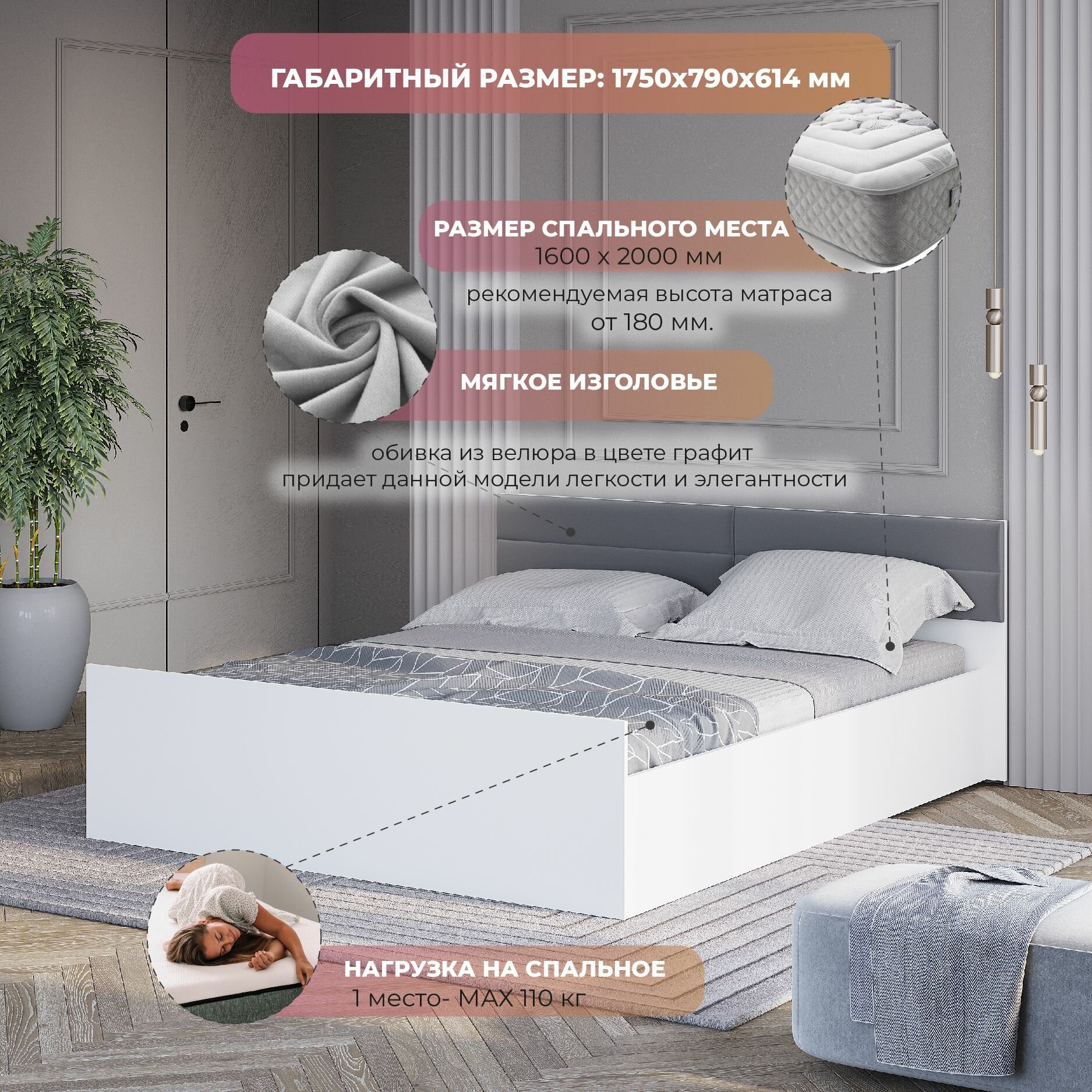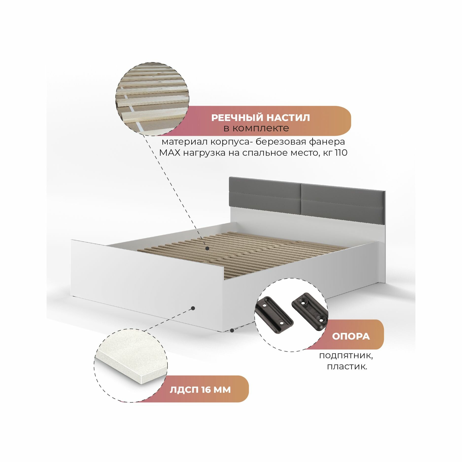 Кровать двуспальная деревянная Фьюжн 160х200, с мягким изголовьем информация: