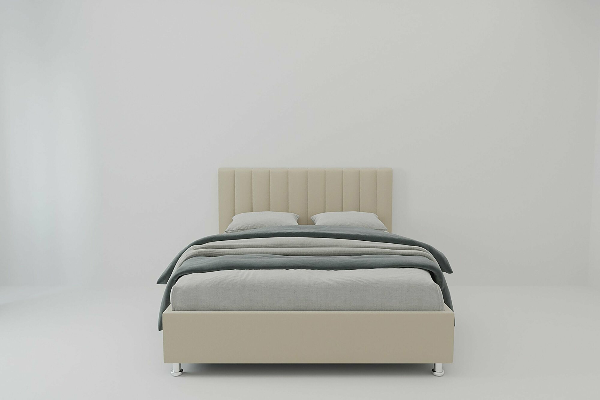 Полутороспальная кровать Челси с матрасом 140x200 с подъемным механизмом и с коробом для белья велюр бежевый ножки 13 см хром 47 500 ₽