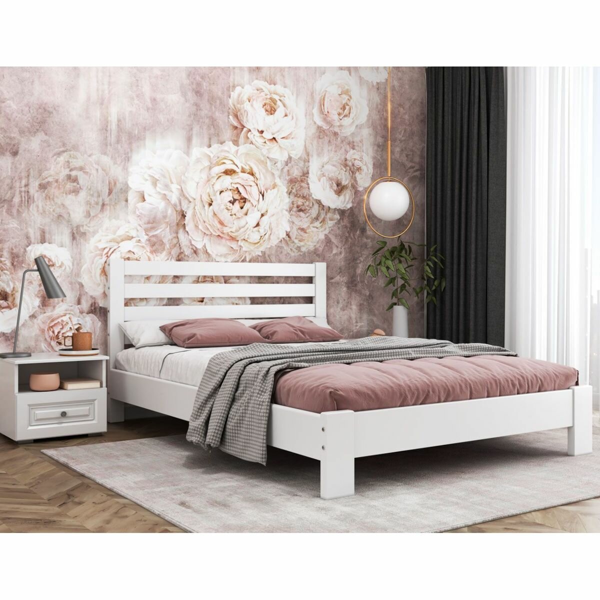 Кровать двуспальная 140х200 Вероника, из массива, цвет - белый информация: