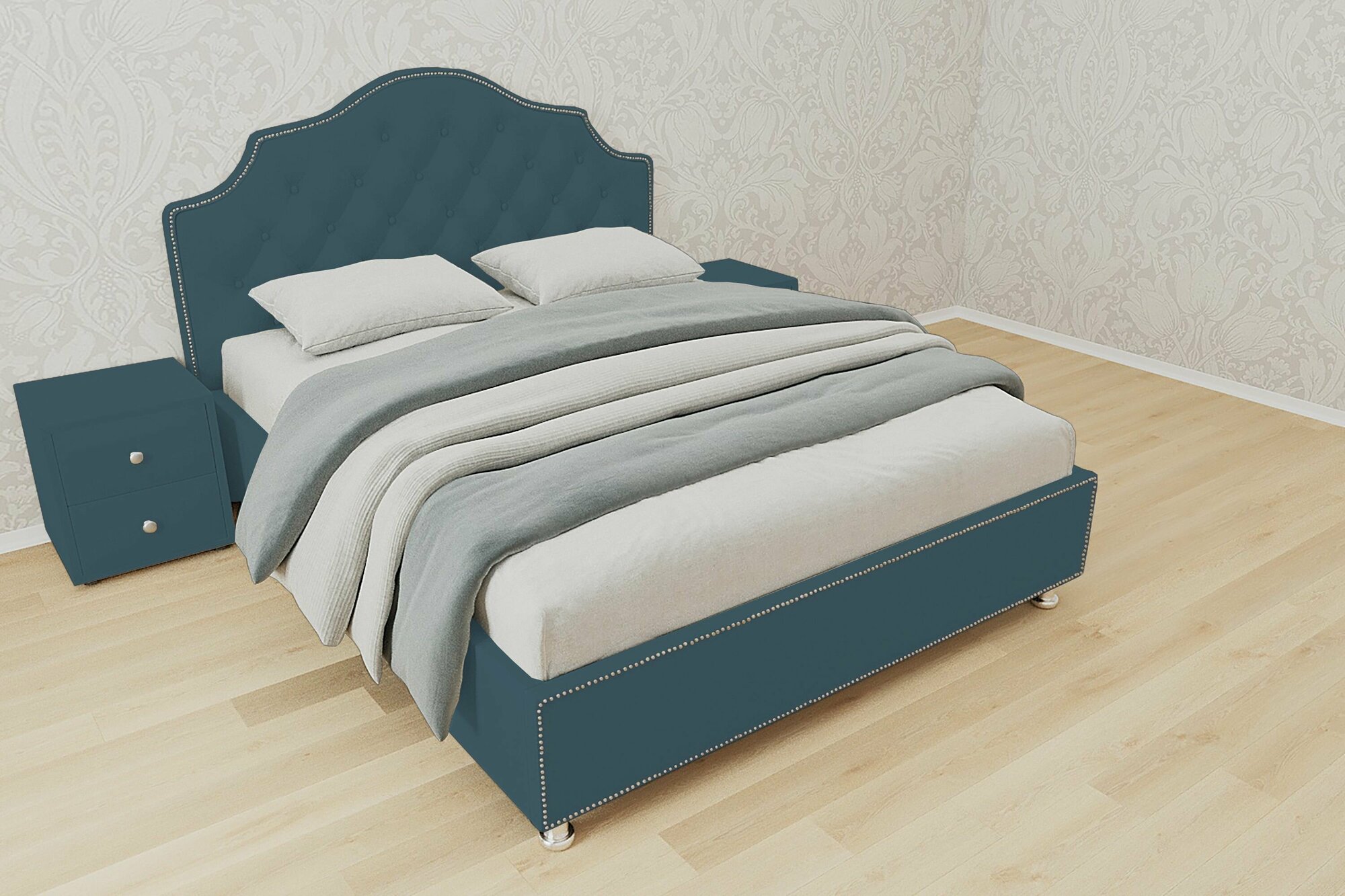 Двуспальная кровать Мария с кареткой 180x200 основание металлическое с ламелями велюр бирюзовый ножки 5 см информация: