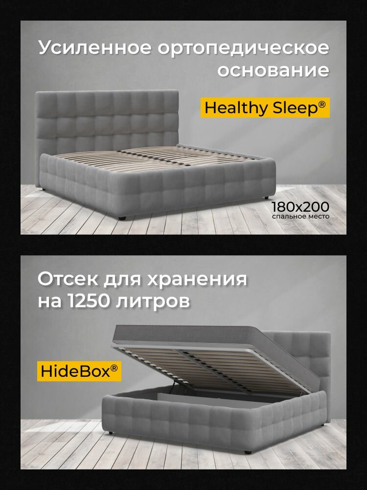 Отзывы на Двуспальная кровать Босс, с подъемным механизмом, велюр Monolit стальной, спальное место 180х200 см