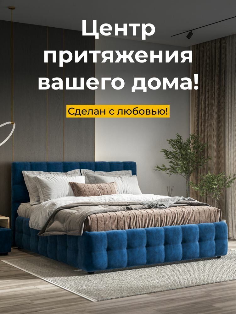 Отзывы на Двуспальная кровать Босс, с подъемным механизмом, велюр Monolit синий, спальное место 180х200 см